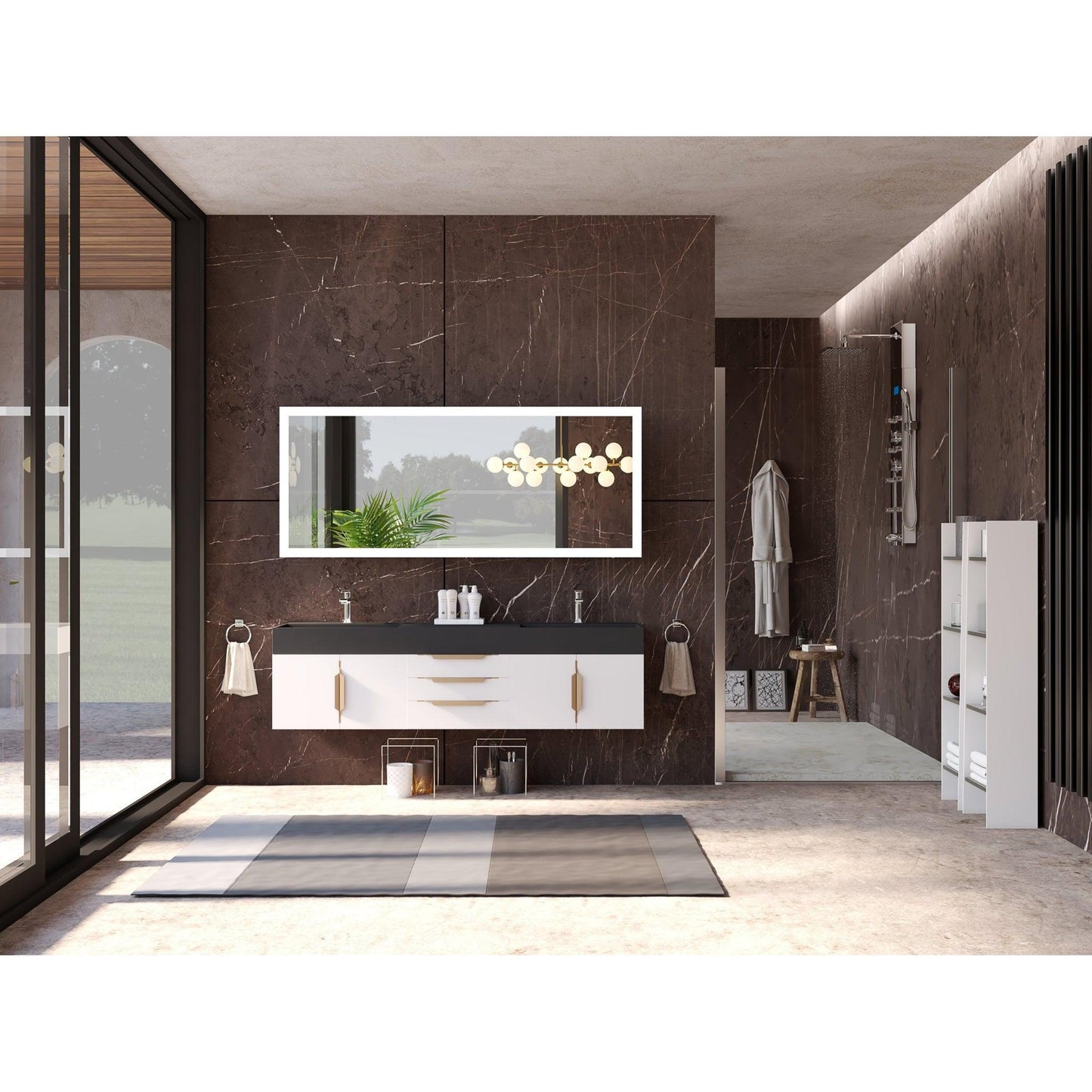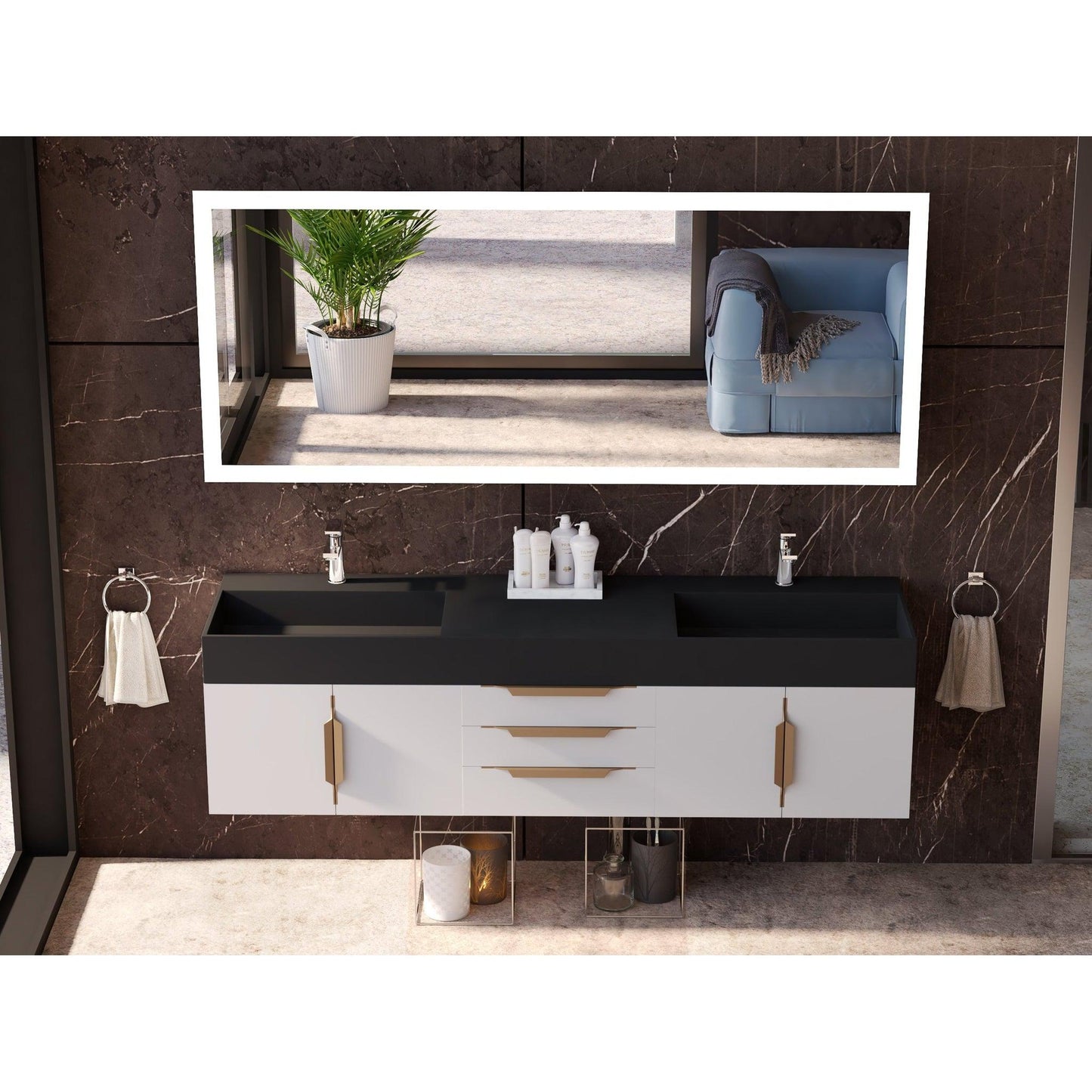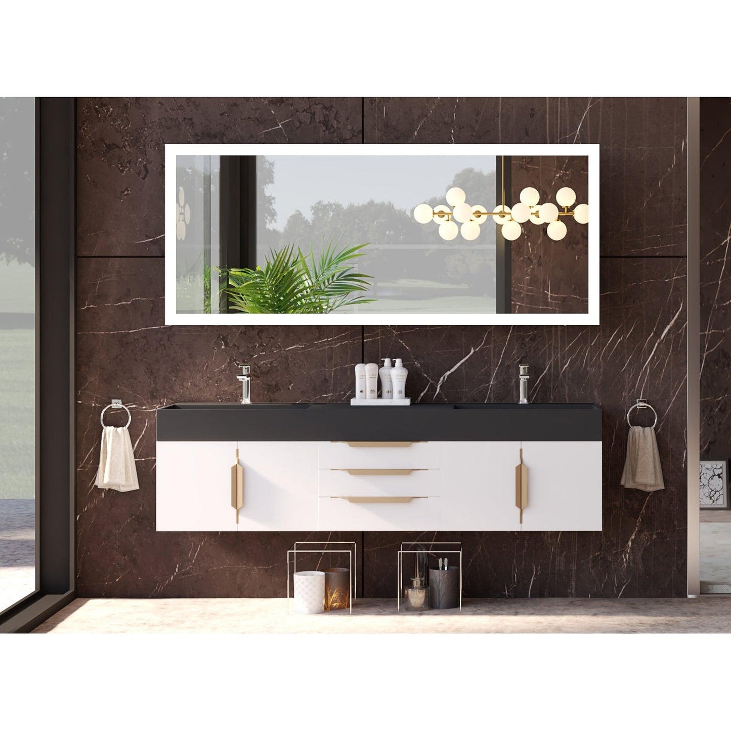 Castello USA Amazon 72" White Double Vanity Set With Black Top and Gold Handles