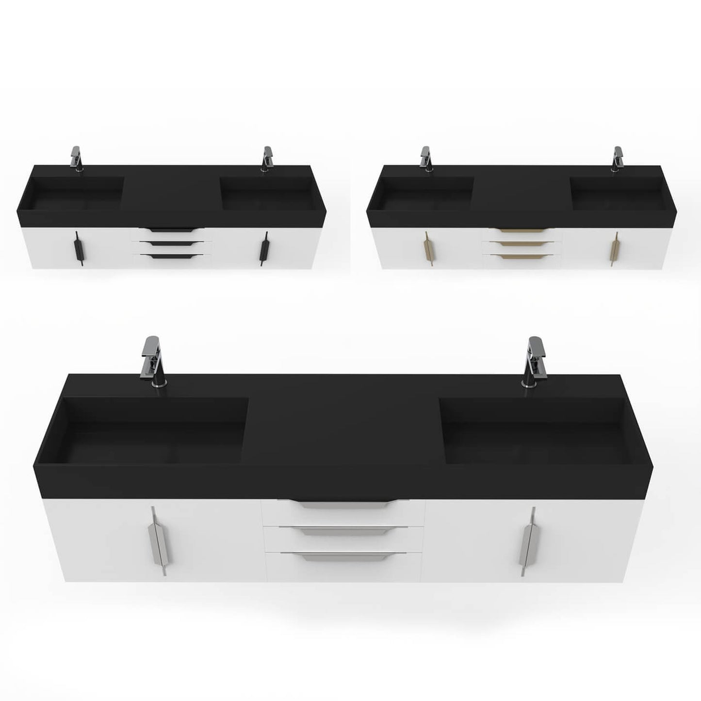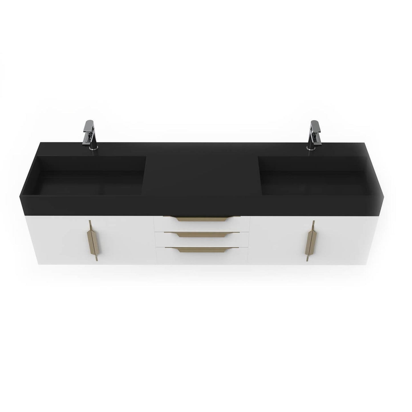 SKU:CastelloUSA-Amazon-72"-White-Vanity Set-Black Top-Gold Handles