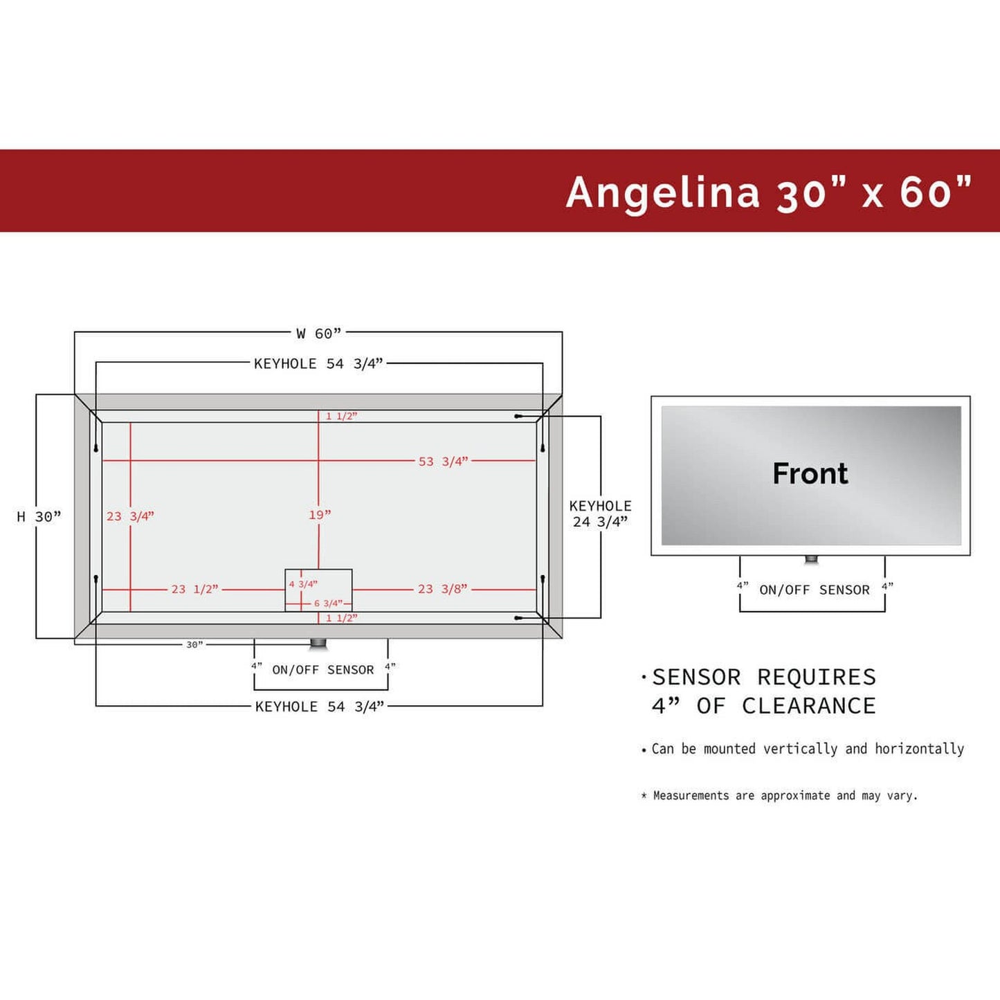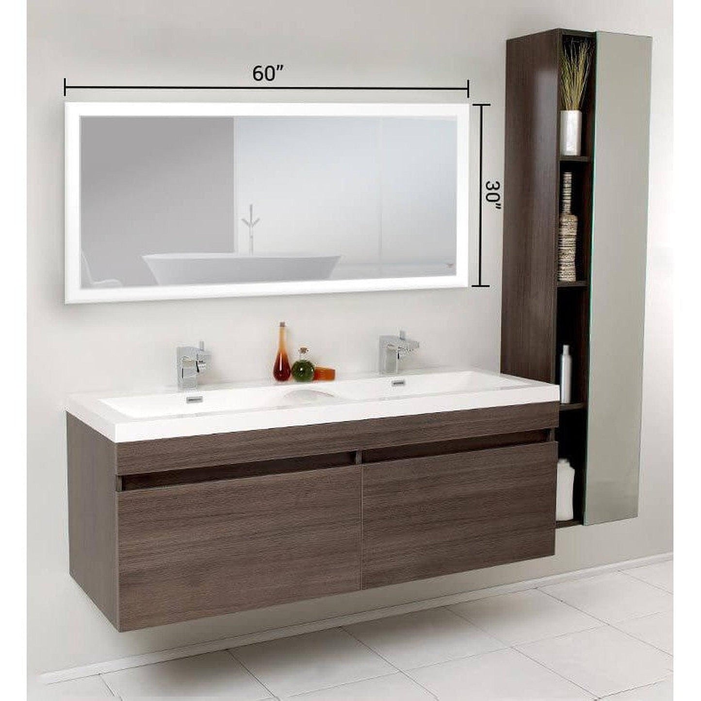 ANGELINA 30" x 60" LED Bathroom Mirror, with On/Off Sensor