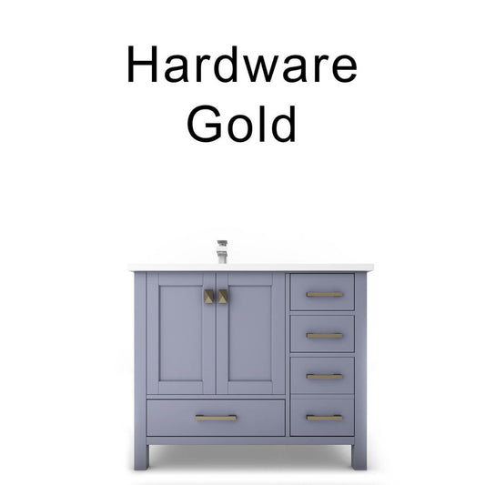 SKU:CastelloUSA-Yamyam-36"-Gray-Left Offset-Freestanding Vanity Set-With-White Top-Gold Handles