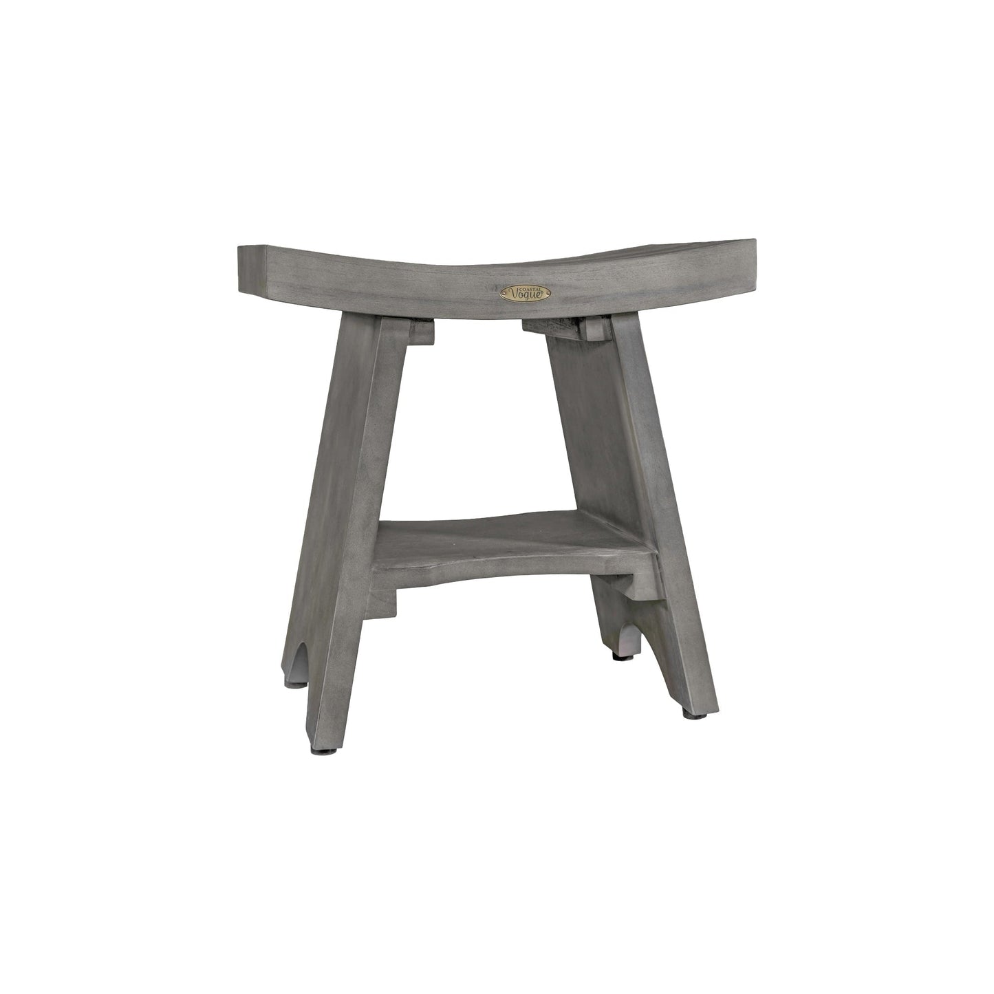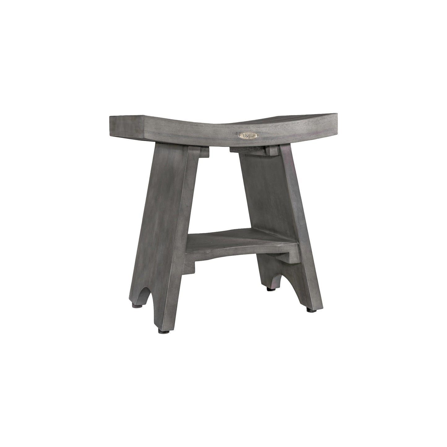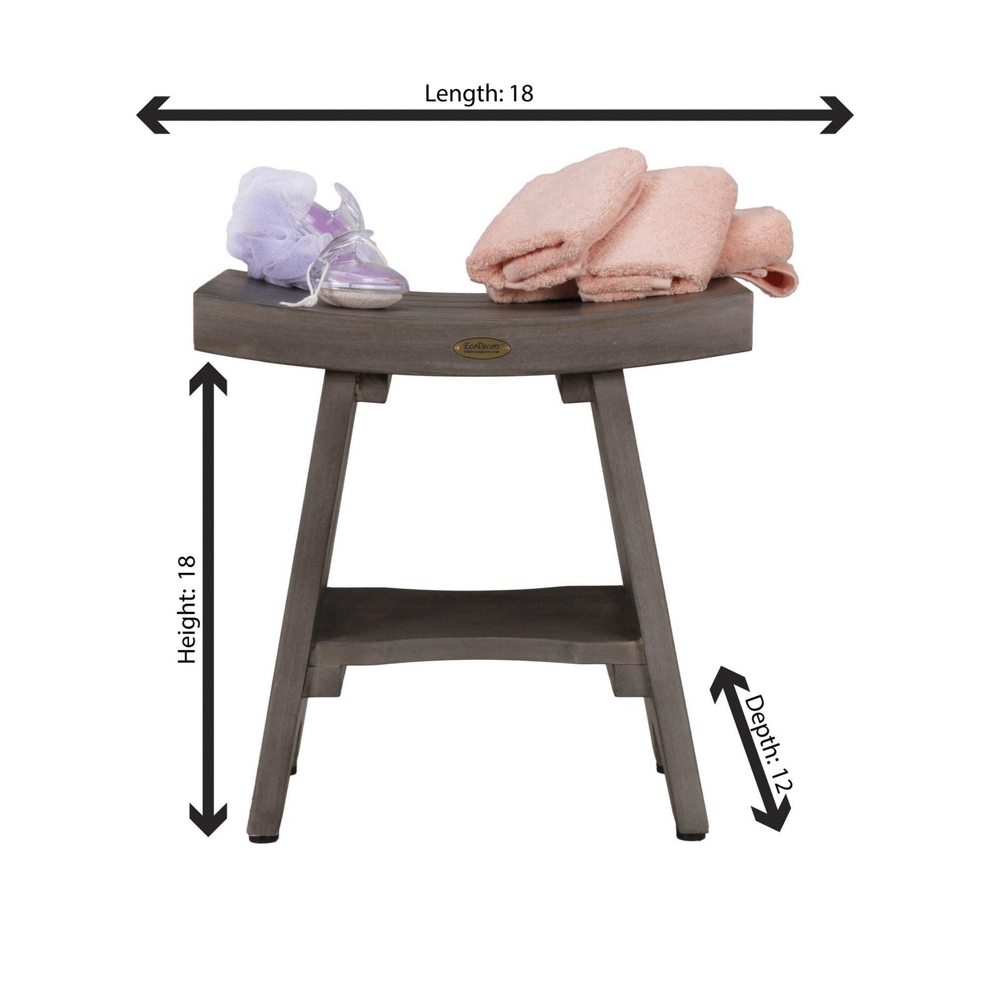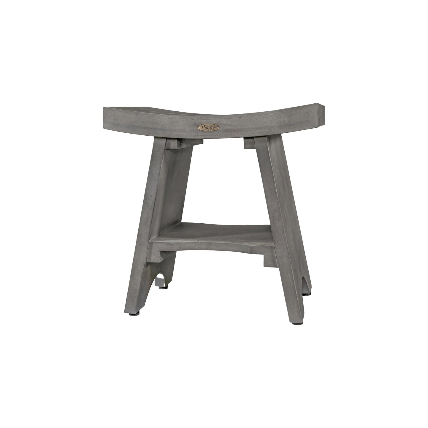 CoastalVogue Serenity 18" Antique Gray Solid Teak Wood Shower Bench With Shelf