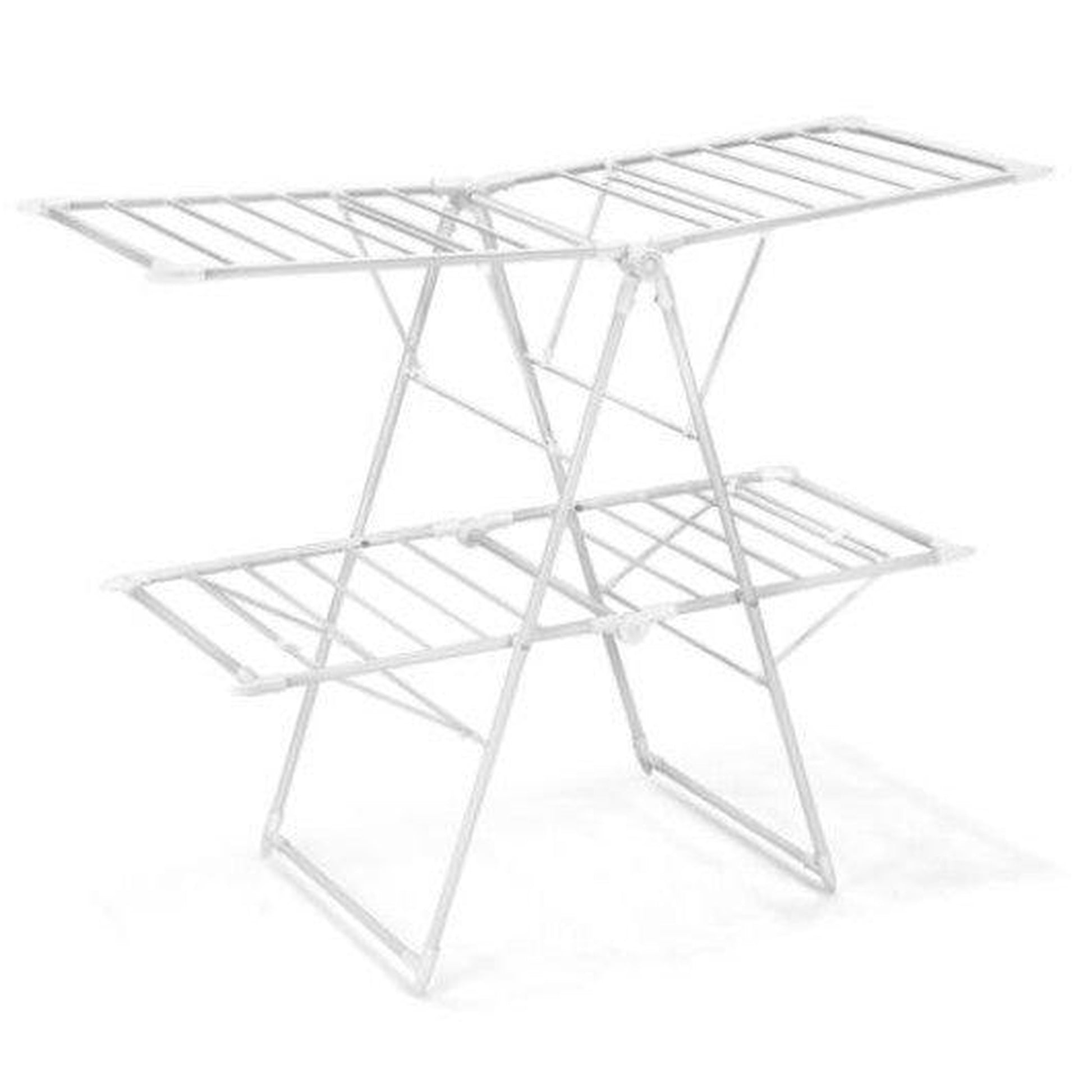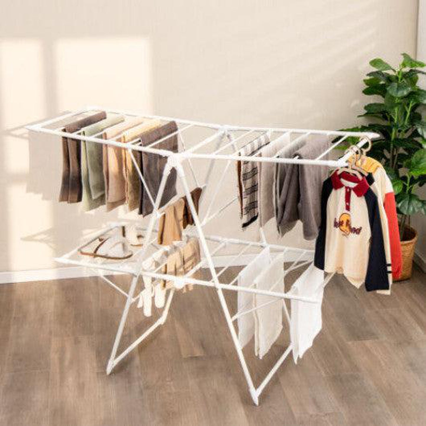 Costway 2-Level White Foldable Clothes Drying Rack with Height-Adjustable Gullwings