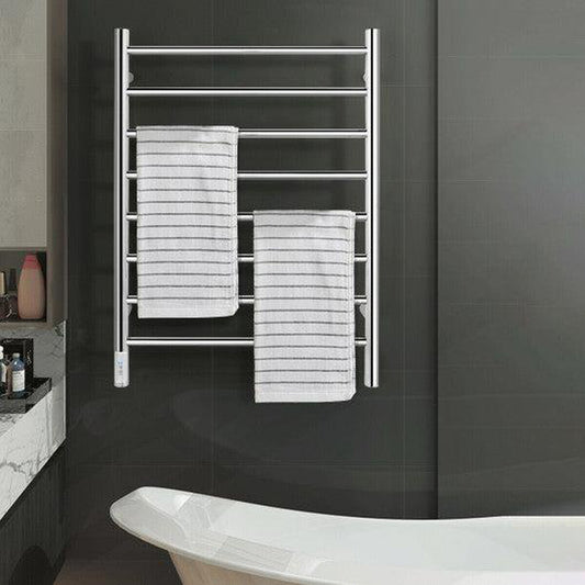 With 8 horizontal bars and a sturdy steel structure this towel rack can meet all your needs. Connecting it with the power supply turn on the switch you will find it reaches mix temperature after 30 minutes of which constant temperature is around 104°F -122 °F. There is also a timer that allows it for 2h / 4h options to fulfill individual requirements. No need to worry about using reliability since it is UL certified. More it is well known that the 304 stainless steel shows perfect performance in hardness waterproofness and durability and that's why this towel rack adopts such premium material. It is fairly easy to mount the rack at any height you want according to your family using habit. If you are looking for a towel rack do not hesitate to place an order!
