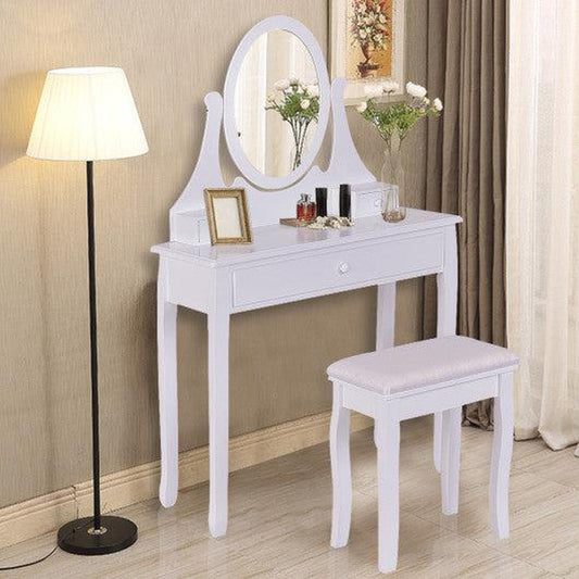 Costway White Bathroom Vanity Wooden Makeup Dressing Table Stool Set