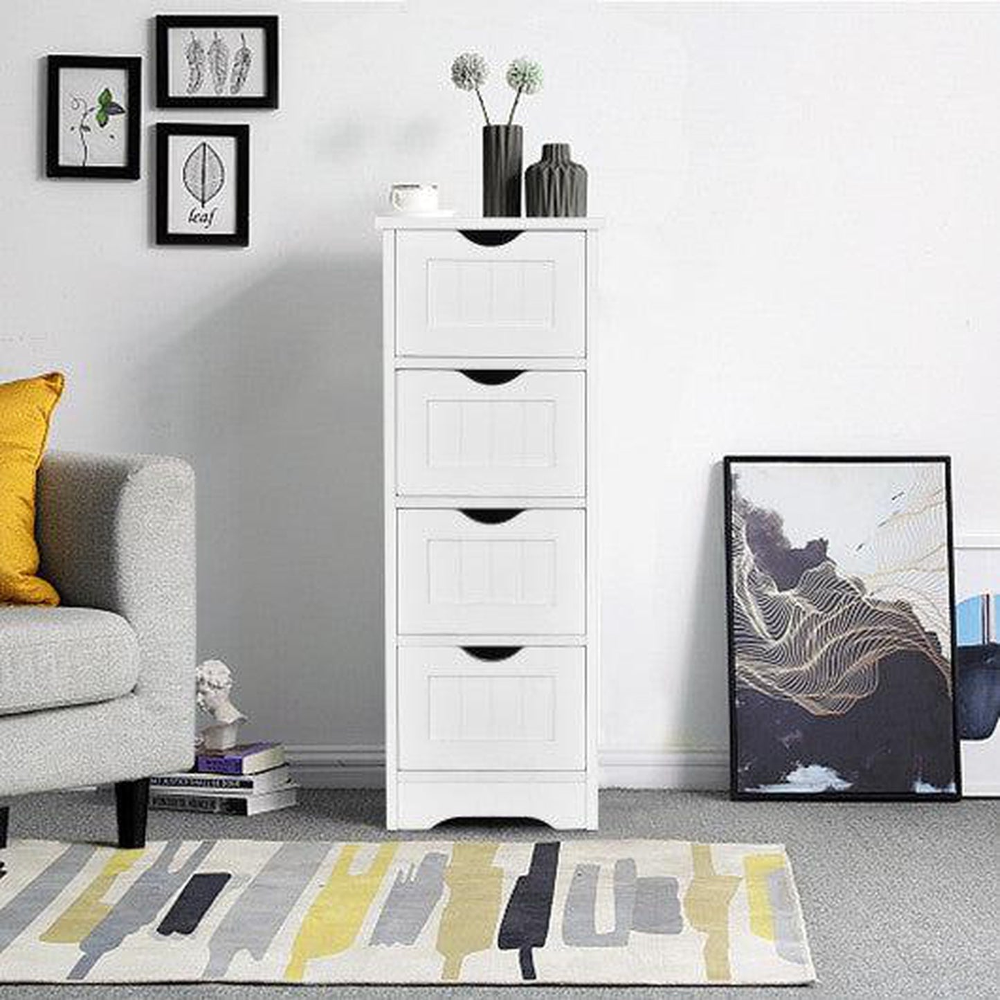 Costway White Floor Wooden Free Standing Storage Side Organizer for Bathroom
