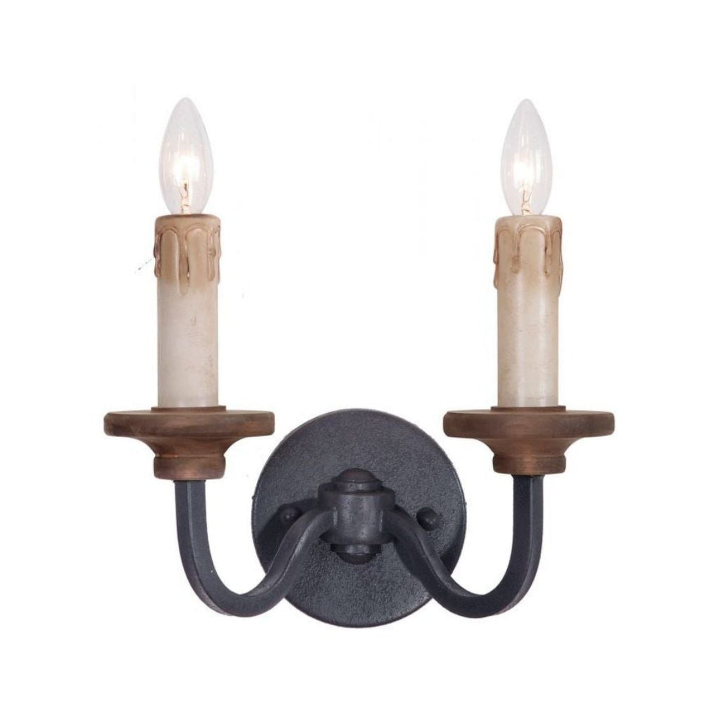 - 1PC 2-Light Textured Black and Whiskey Barrel Frame Finish Wall Sconce