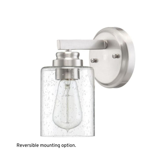 Craftmade Bolden 5" x 9" 1-Light Brushed Polished Nickel Wall Sconce With Clear Seeded Glass Shade