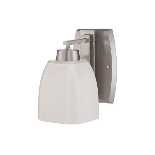 Craftmade Bridwell 5" x 8" 1-Light Brushed Polished Nickel Wall Sconce With White Frosted Glass Shade