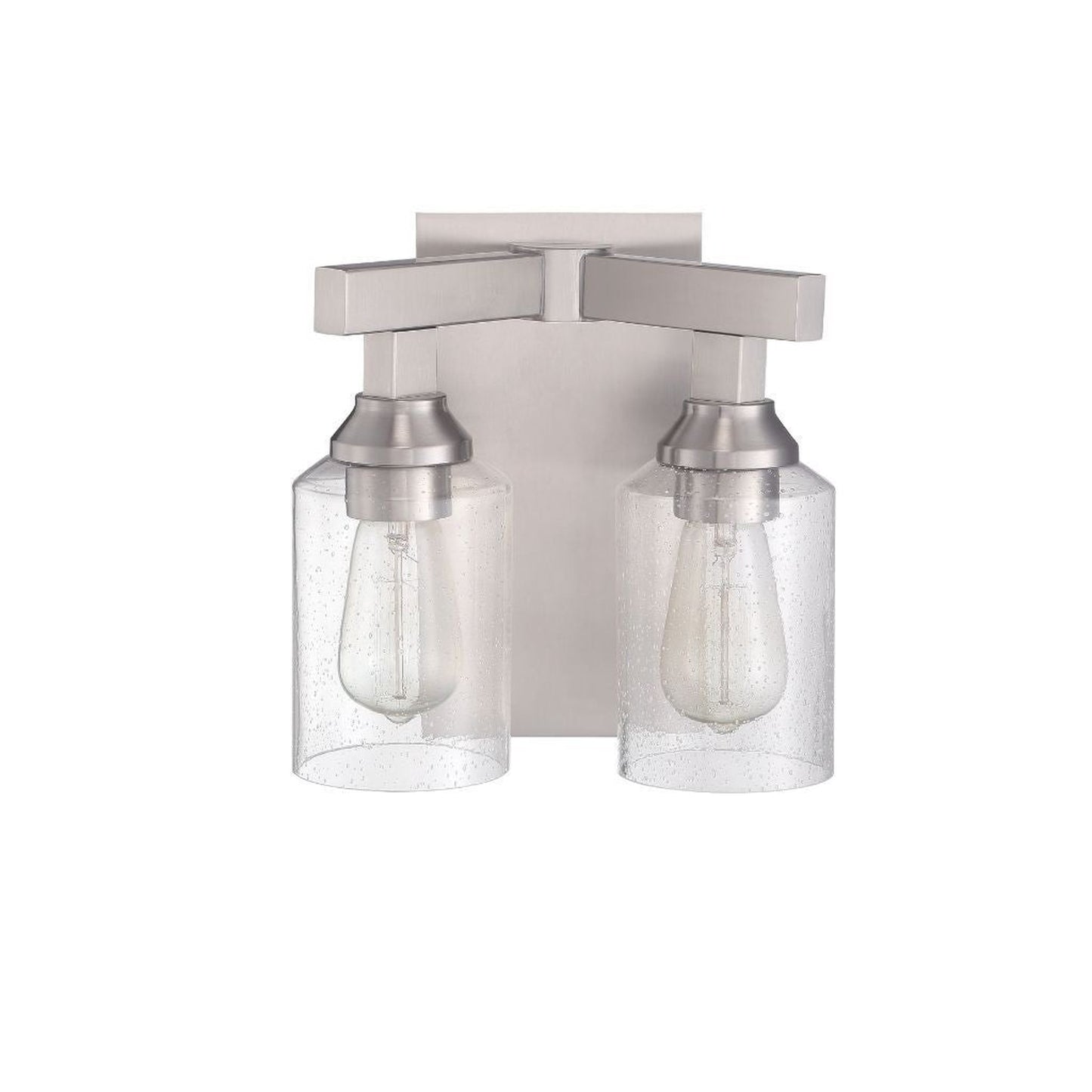 - 1PC 2-Light Brushed Polished Nickel Frame Finish Vanity Light