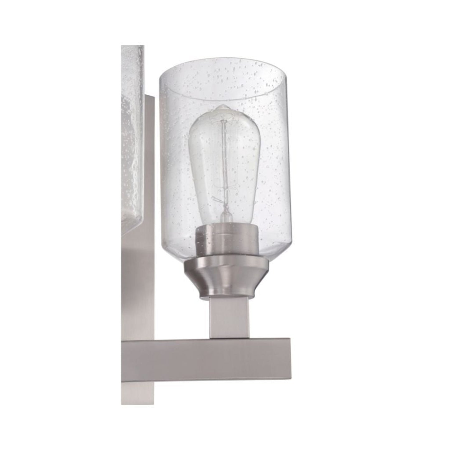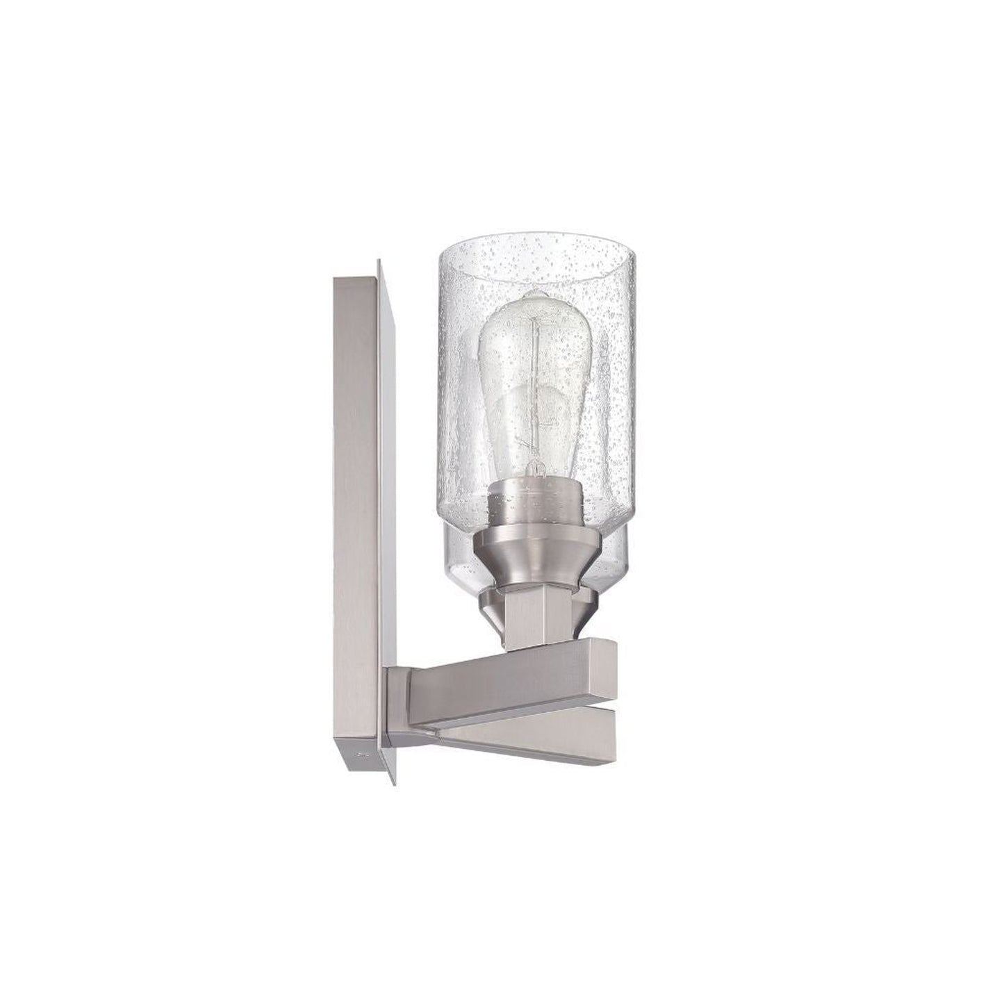 The strong lines and larger scale of the Chicago Collection by Craftmade make a bold statement easily at home in any setting. The coordinating clear seeded glass vanities and mini pendant provide excellent lighting options for any bathroom large or small.