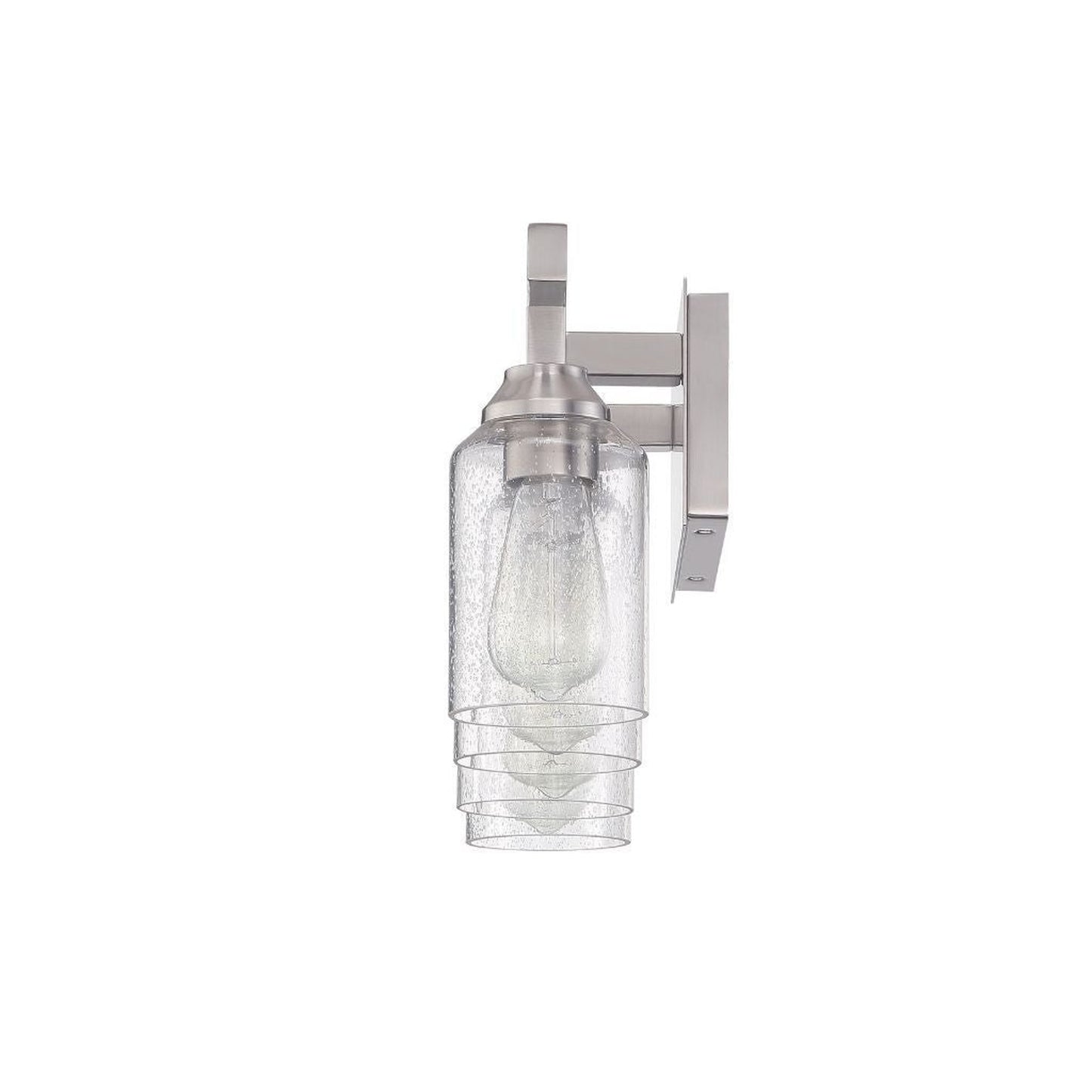 The strong lines and larger scale of the Chicago Collection by Craftmade make a bold statement easily at home in any setting. The coordinating clear seeded glass vanities and mini pendant provide excellent lighting options for any bathroom large or small.