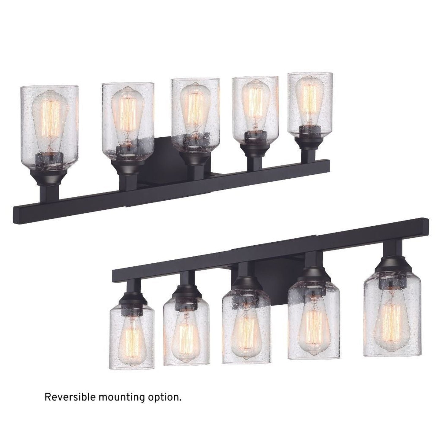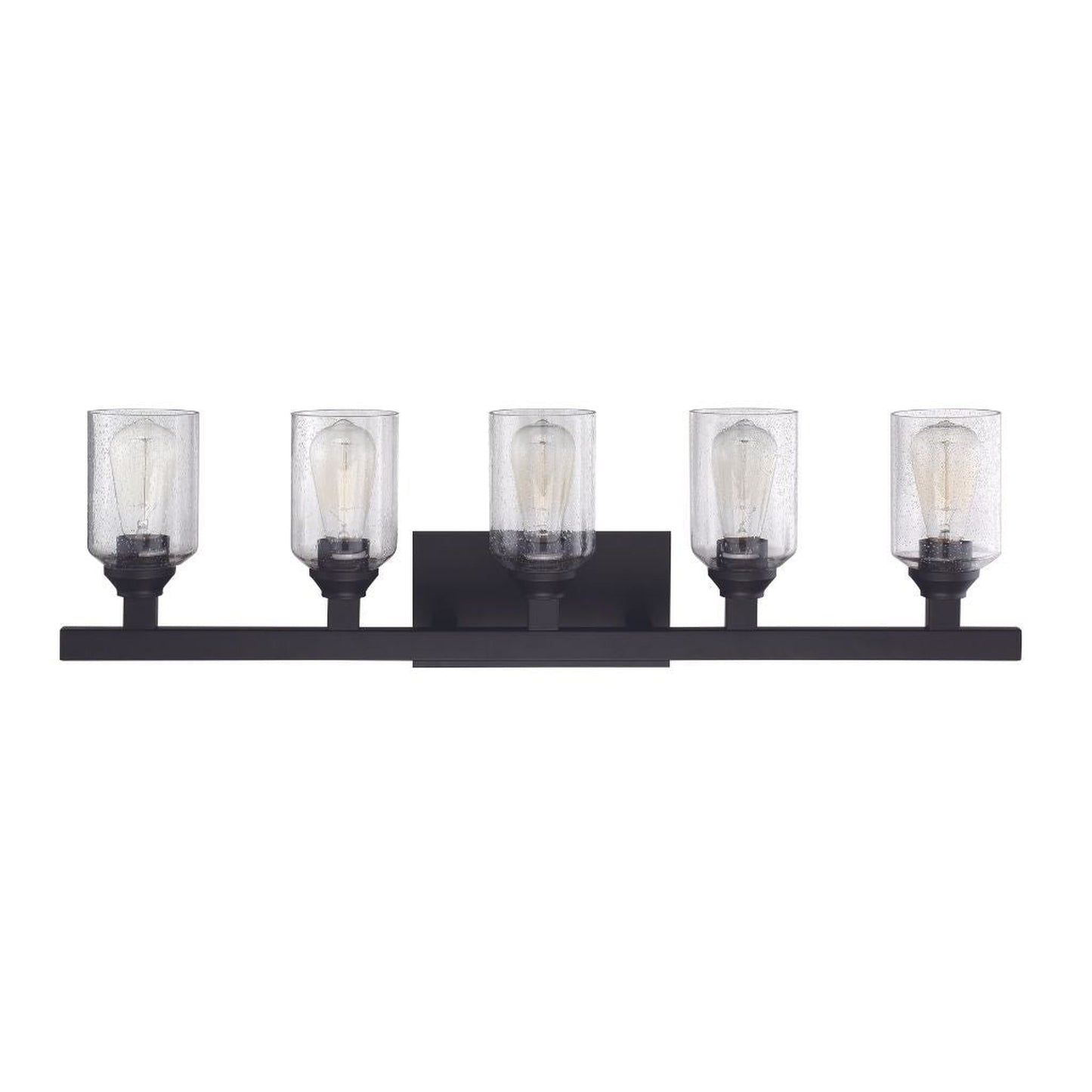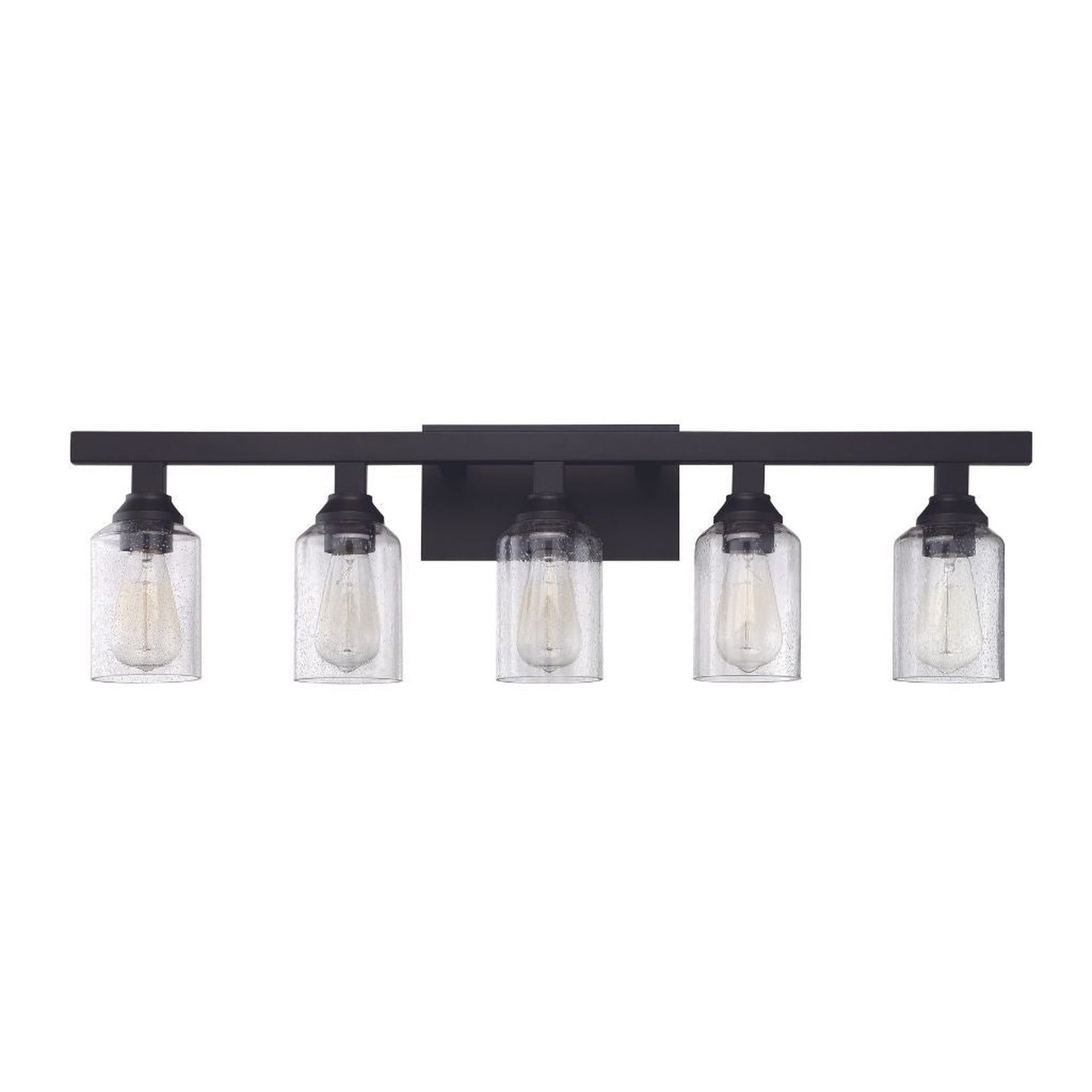 Craftmade Chicago 36" 5-Light Flat Black Vanity Light With Clear Seeded Glass Shades