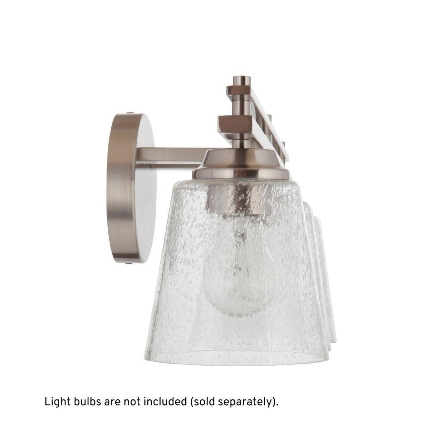 The Drake Vanity Collection now includes a one-light wall sconce. Its distinctive double rail silhouette and clear seeded glass globes for maximum illumination offer minimalist styling equally at home in a transitional or traditional setting.