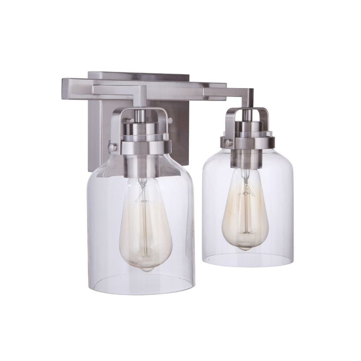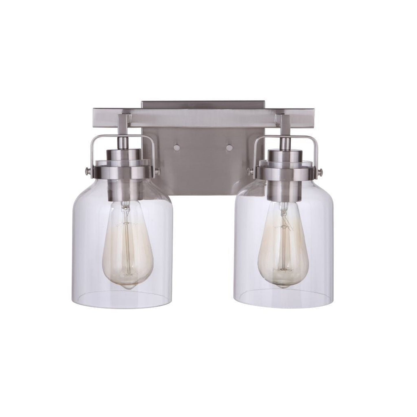 - 1PC 2-Light Brushed Polished Nickel Frame Finish Vanity Light