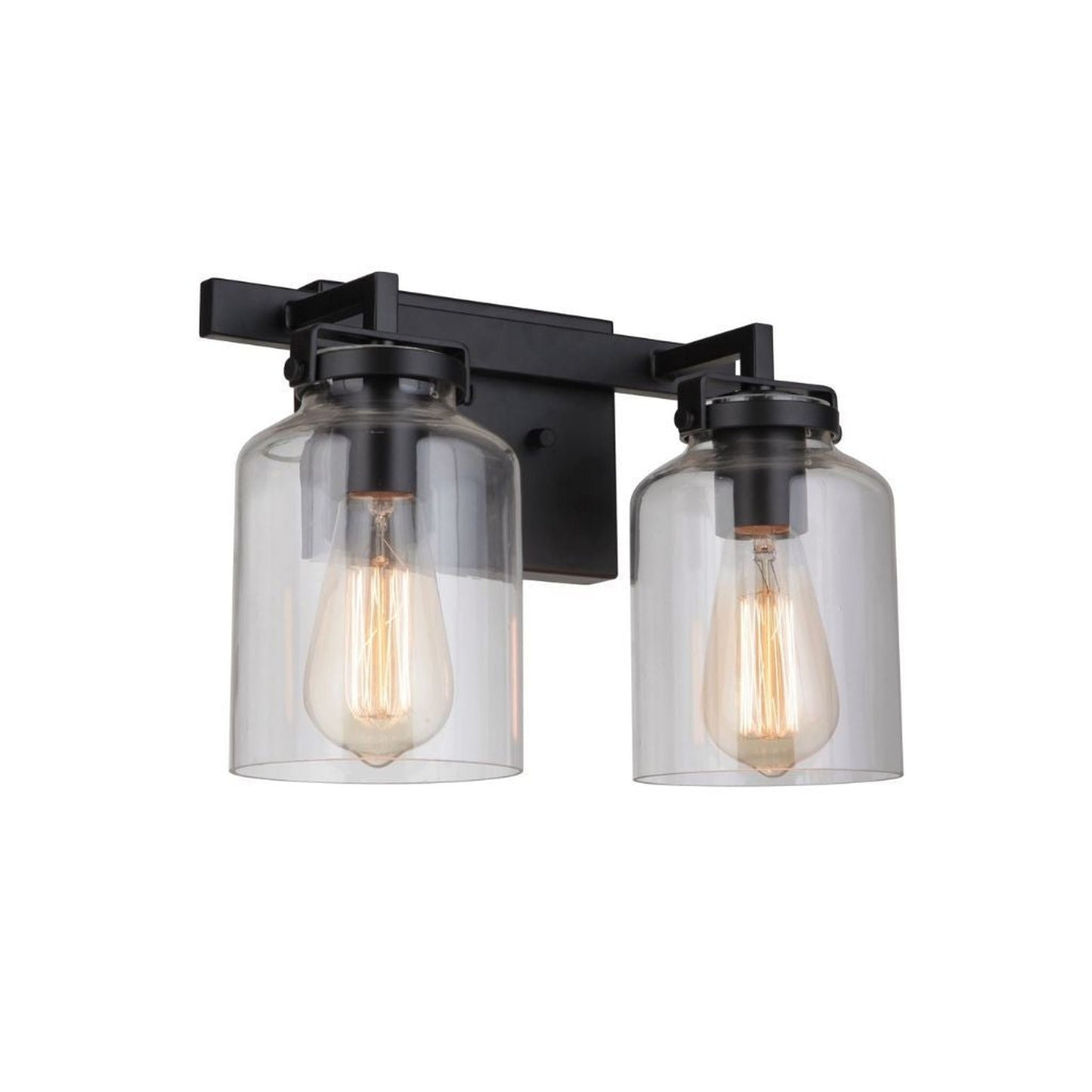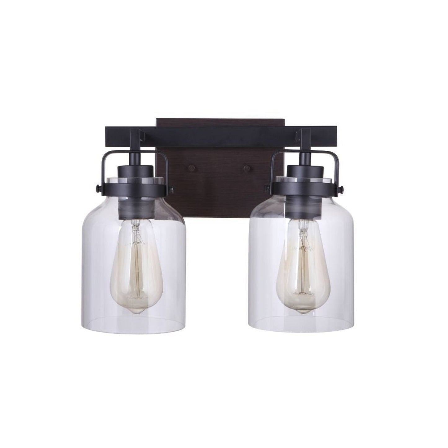 - 1PC 2-Light Flat Black and Dark Teak Frame Finish Vanity Light