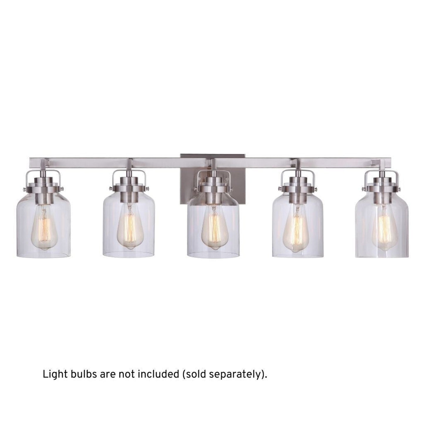 - 1PC 5-Light Brushed Polished Nickel Frame Finish Vanity Light