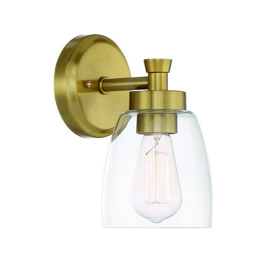 Craftmade Henning 5" x 9" 1-Light Satin Brass Wall Sconce With Clear Glass Shade