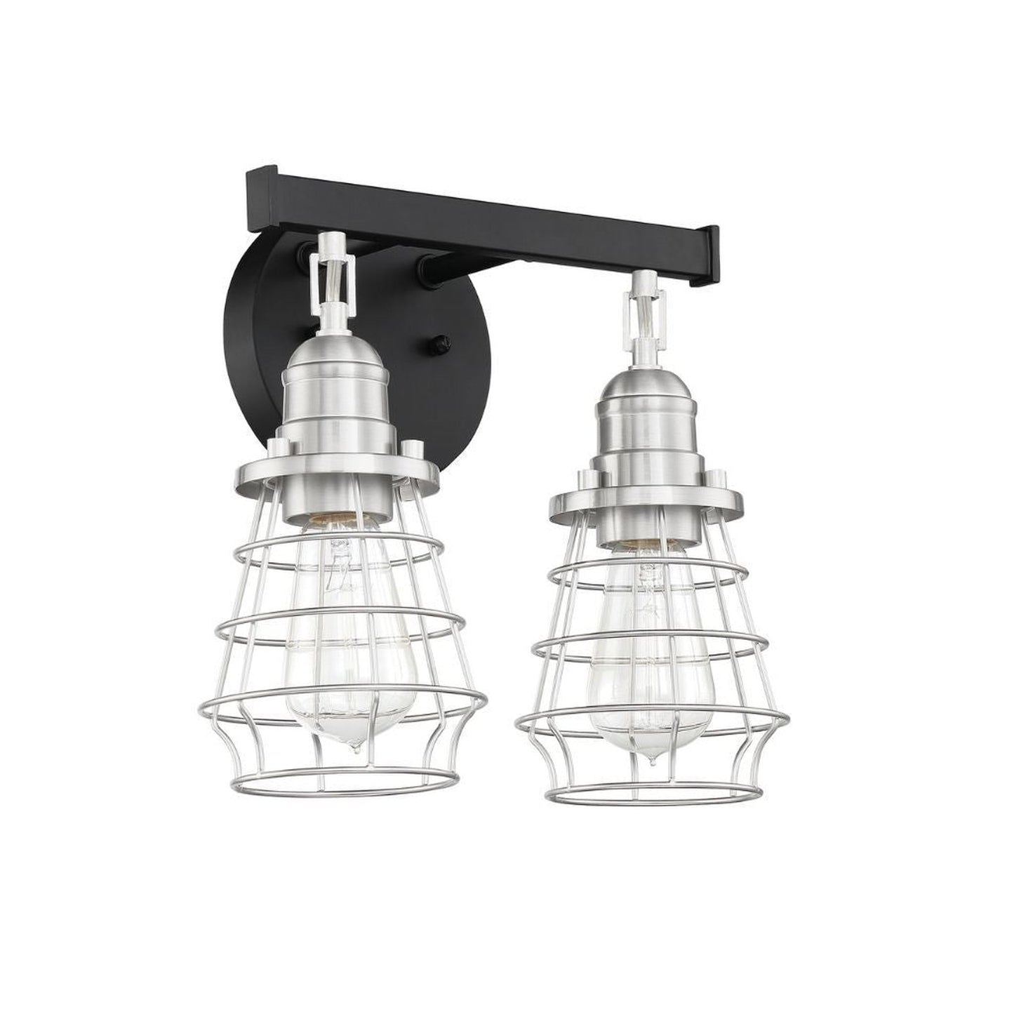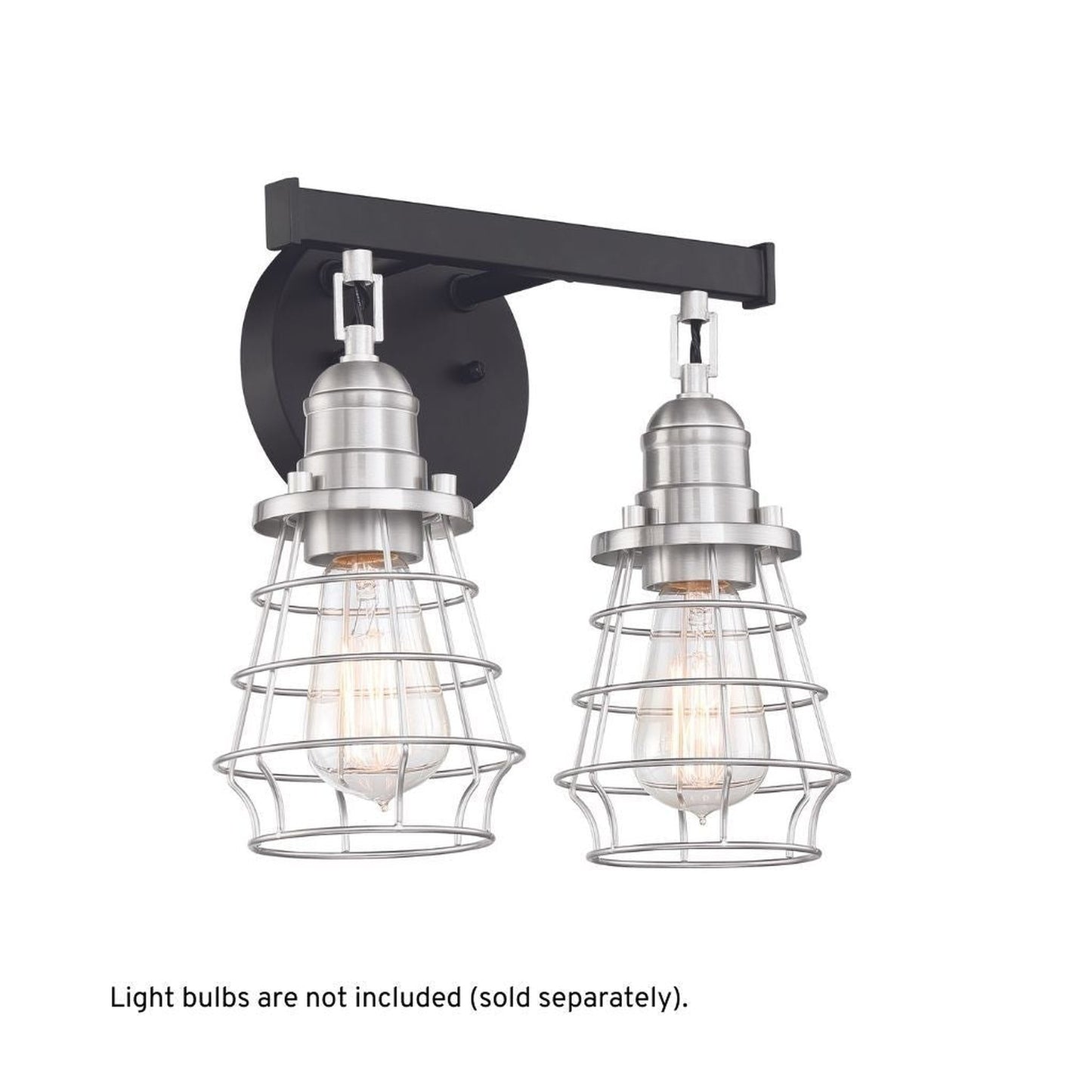 Craftmade Thatcher 12" 2-Light Flat Black Vanity Light With Brushed Polished Nickel Metal Wire Shades