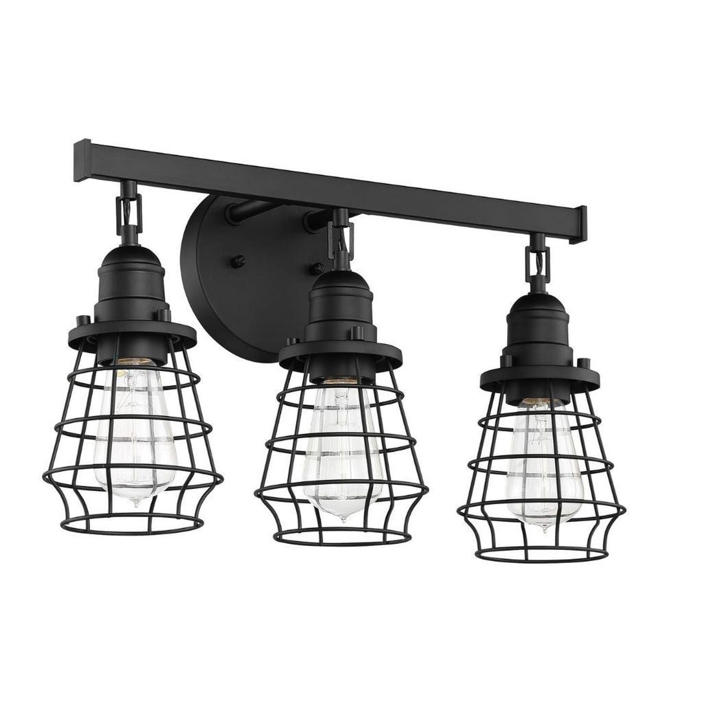 - 1PC 3-Light Flat Black Frame Finish Vanity Light