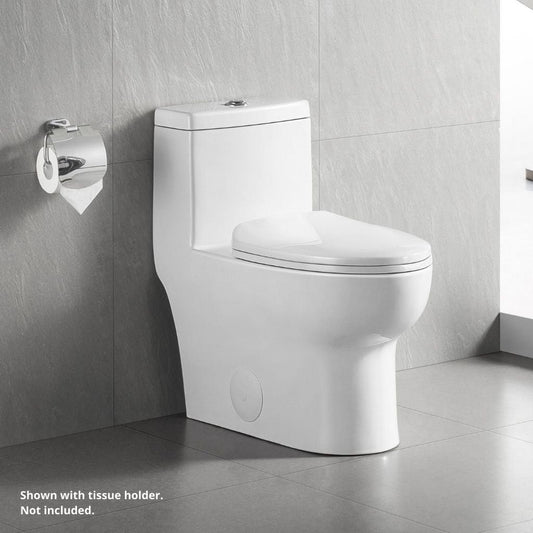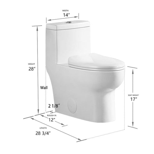 This dual-flush elongated floor-mounted one-piece toilet combines contemporary style and comfort. Its glazed surface adds sophistication and is easy to maintain. The toilet seat lid closes silently, creating a peaceful bathroom environment. Featuring selectable 1.6GPF or 1.1GPF dual-flush technology, it allows water-efficient use suited to each task. A fully glazed flush then provides powerful yet whisper-quiet waste removal without clogs or leaks. The skirted one-piece toilet simplifies installation and cleaning. The comfortable seating height reduces strain and enhances comfort. Crafted from high-quality ceramic, this Elongated skirted one-piece toilet is resistant to scratches, stains, and fading. The seamless integration of the tank and bowl creates a sleek and easy-to-clean design. The toilet includes a seat and wax rings for convenient installation and use.