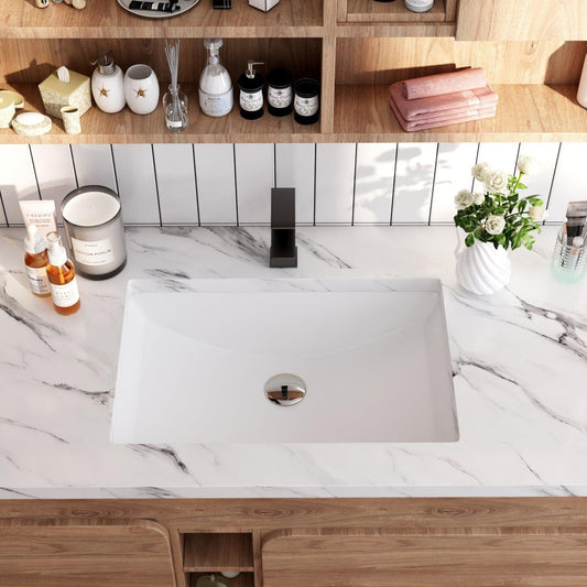 This vitreous rectangular undermount bathroom sink brings your lovely home a refined look. It perfectly combines both classic style and versatility, an excellent choice for the traditional and modern bathroom. It's spacious rectangular sharp is a space-saving design, helps to save the countertop space. It is made from high-quality china, easy to clean, scratch-resistant. The feature of sturdy is easy to meet your requirement of the bathroom sink. This sink with an overflow hole prevents excessive water filling effectively.