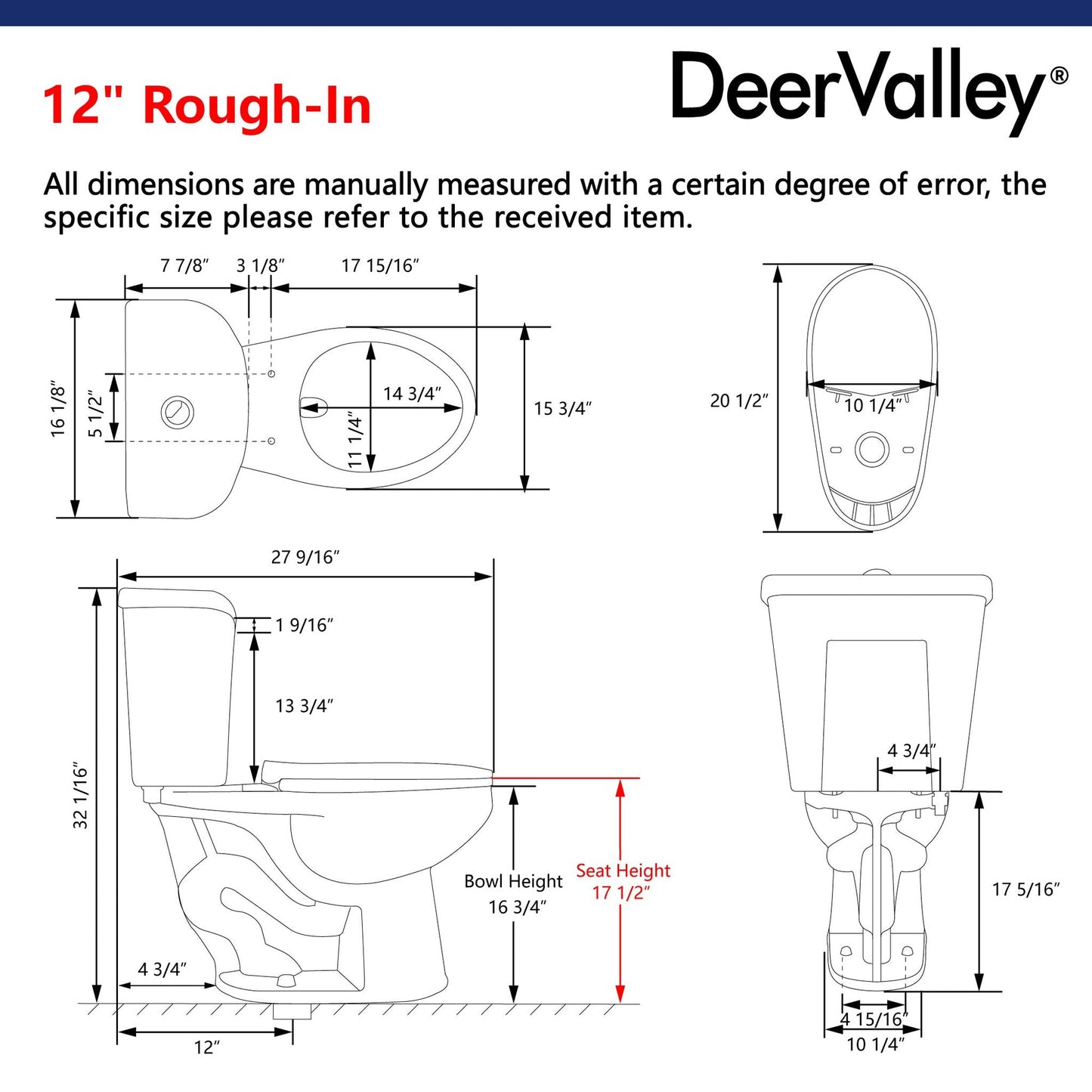 DeerValley Dynasty 16" x 32" 12" Rough-in Dual-Flush Elongated White Two-Piece Toilet With Soft Closing Seat