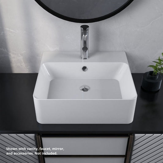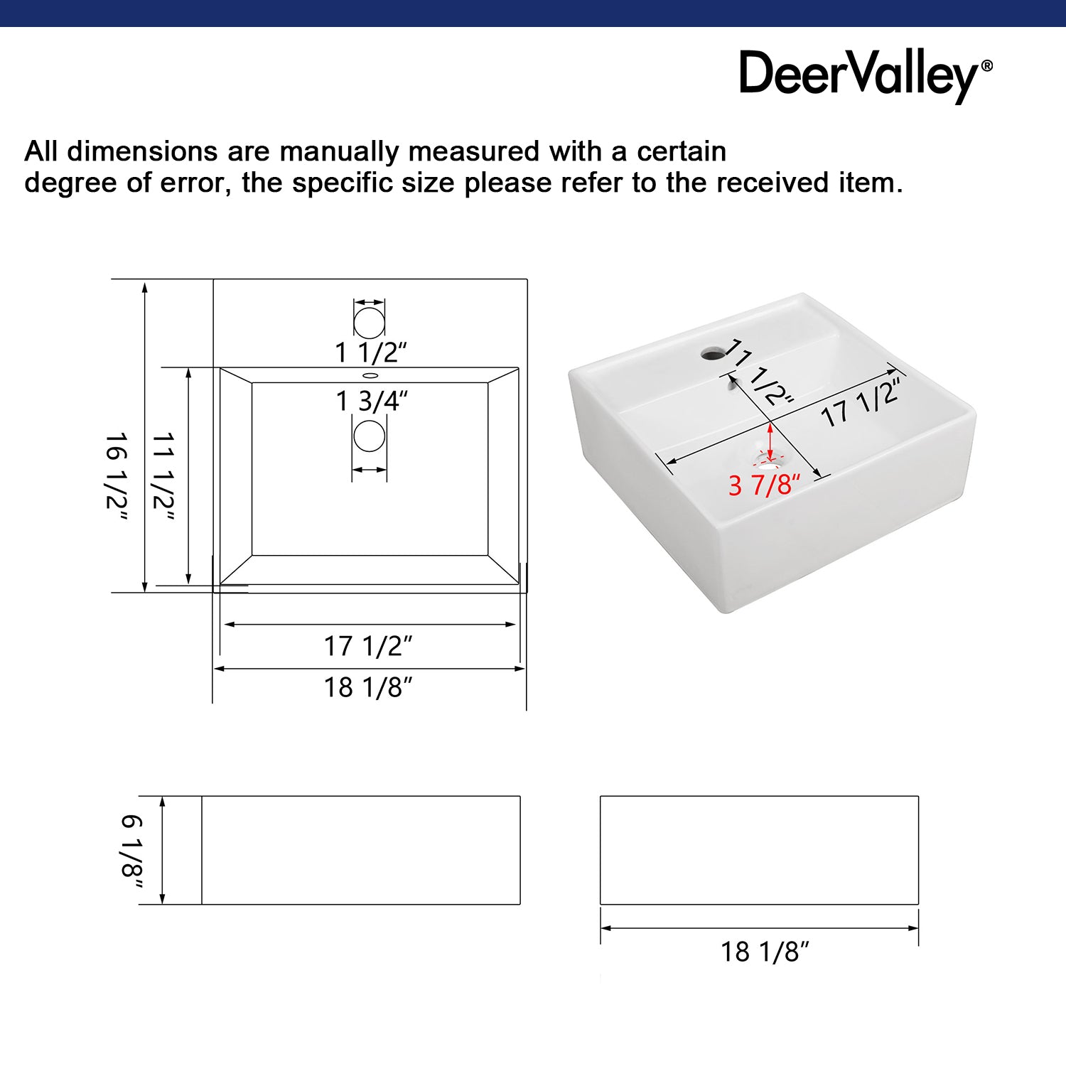 DeerValley Dynasty 18" Rectangular White Vessel Bathroom Sink With Overflow Hole