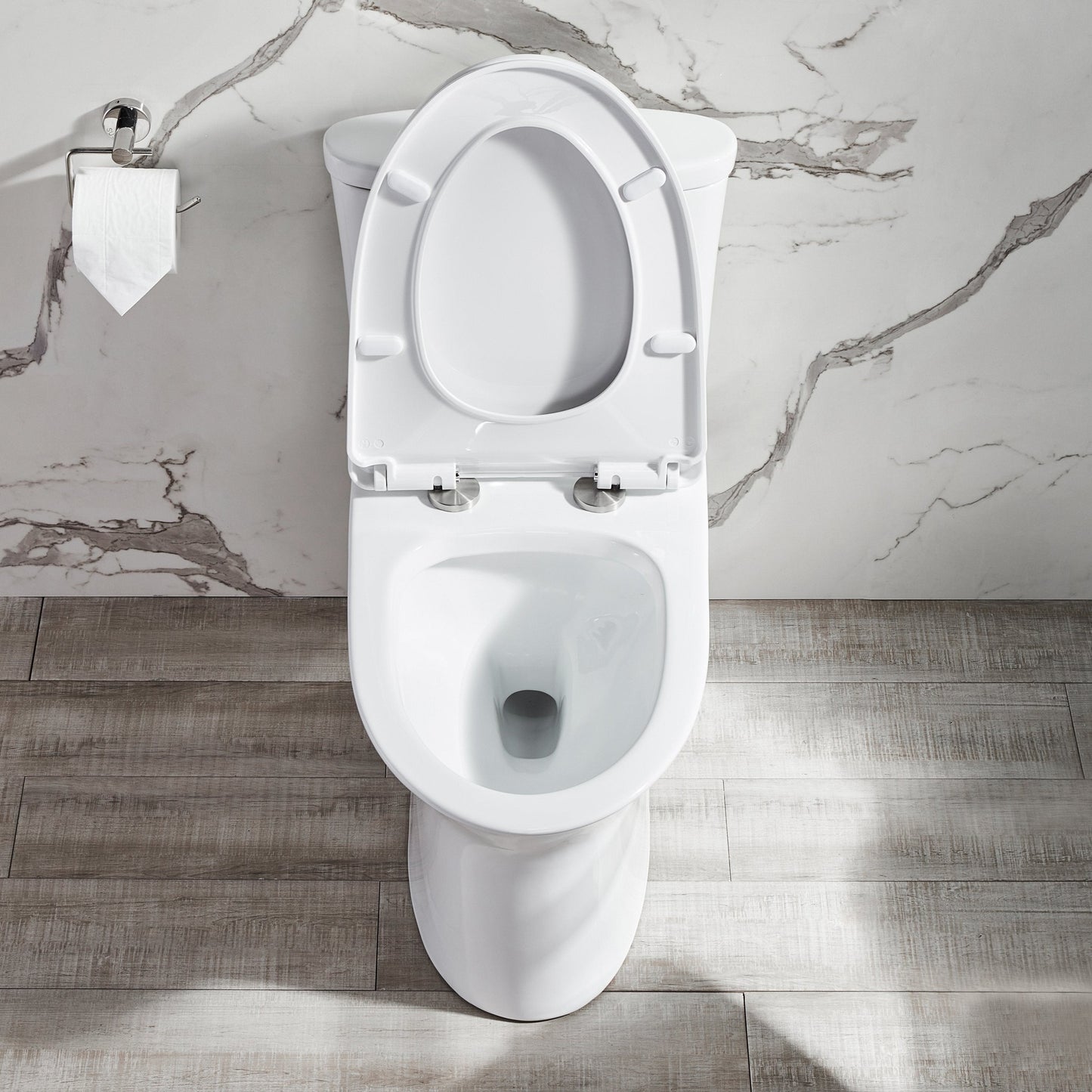 - All-in-one package: Toilet, pre-installed soft closing toilet seat, pre-installed flush valve, high-quality wax ring, floor bolts, and also installation instruction;