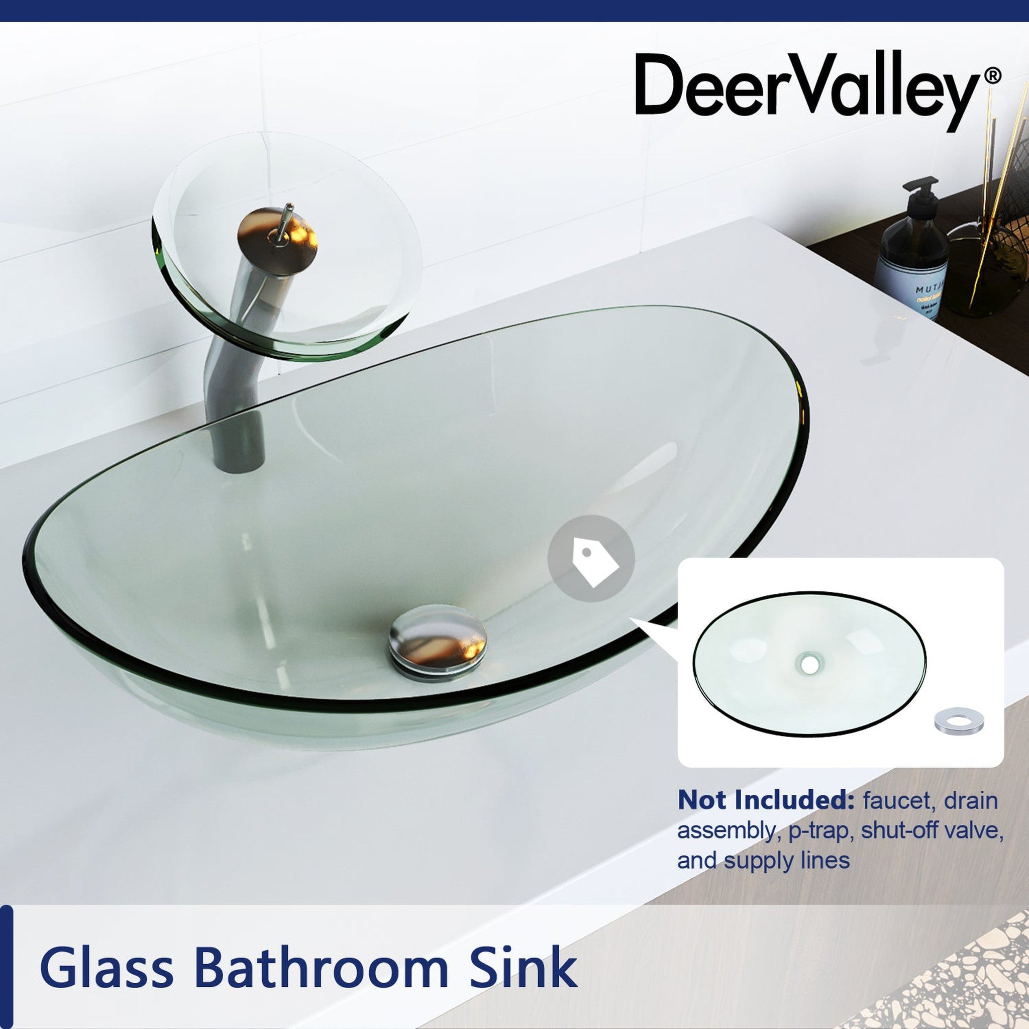 DeerValley Horizon 21" Oval Frosted Tempered Glass Bathroom Vessel Sink