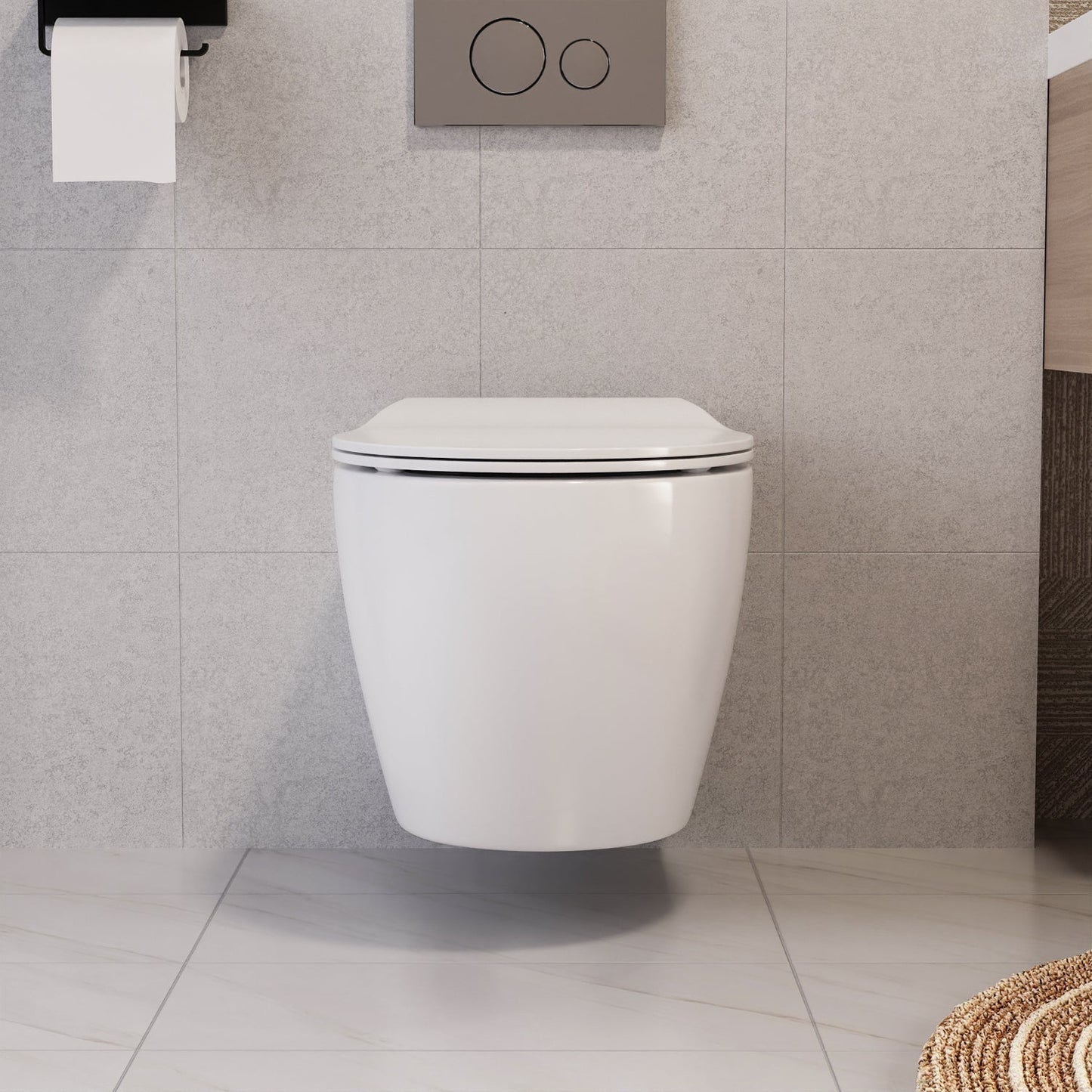 - Small space toilet design for more space saving. The toilet tank carrier system(sold separately) installation is required before the installation of the wall-hung toilet.