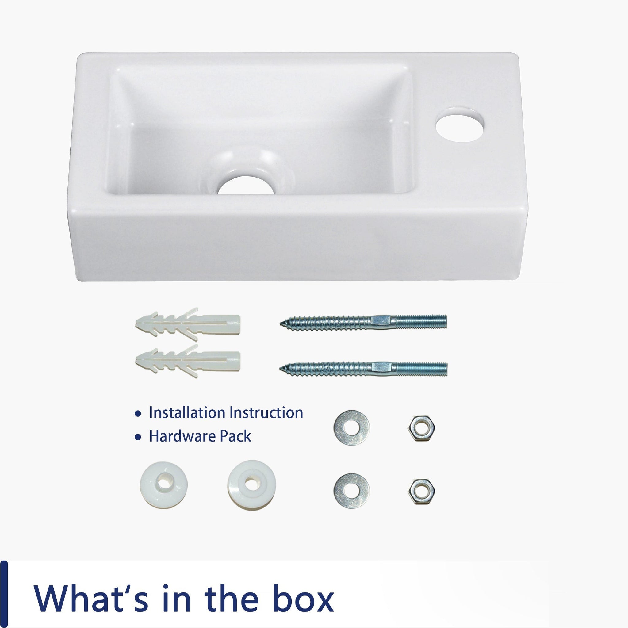 - An easy-to-install wall mount sink (drain assembly and waste are not including);