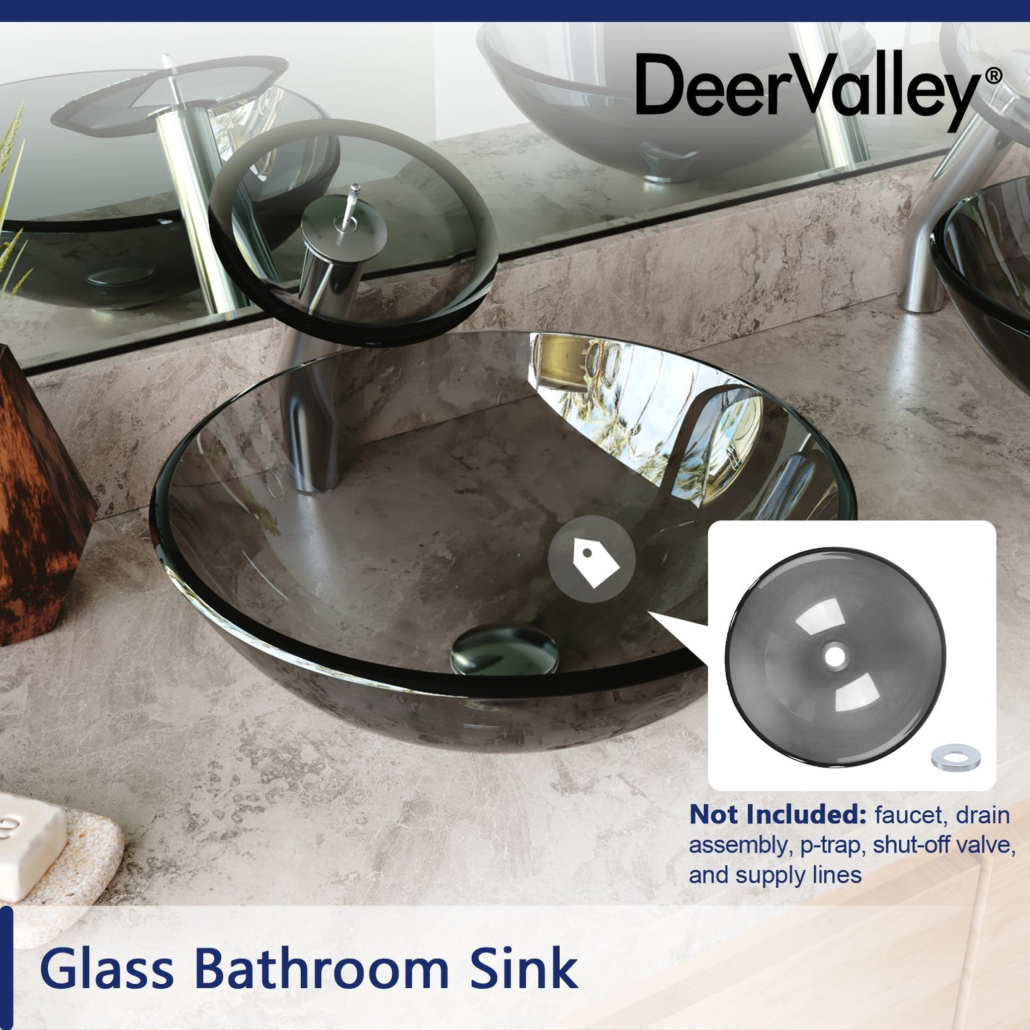 DeerValley Symmetry 17" Circular Black Tempered Glass Bathroom Vessel Sink