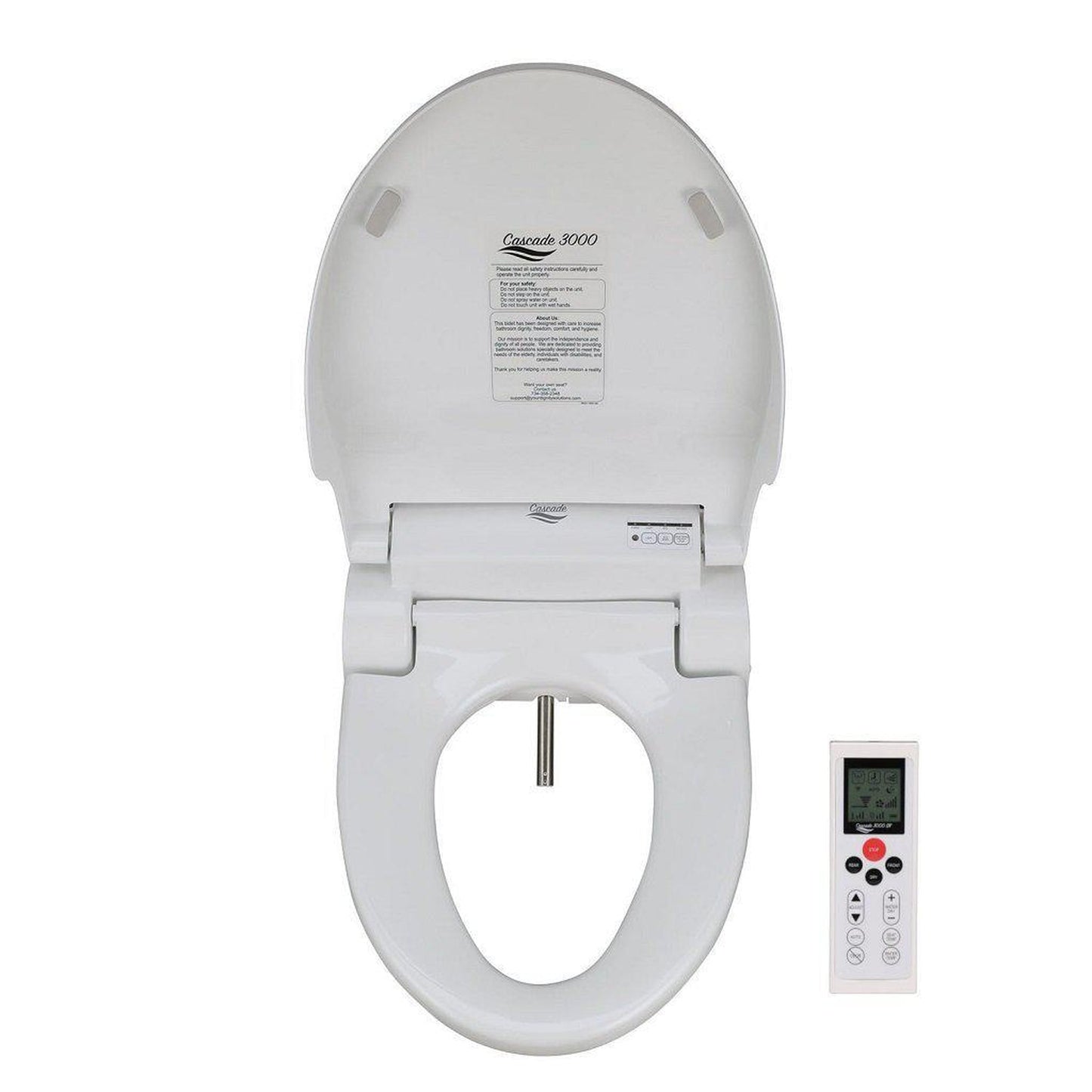 While most bidet lids can't support the weight of an adult, the Cascade 3000 features a sittable lid that can safely support up to 300 lbs. Additionally, the versatile design of the Cascade 3000 makes it compatible with both one and two-piece toilets, and unlike many seats on the market today, it's even able to fit French curve toilets. The Cascade 3000 is available in both round and elongated seat styles and comes in a crisp, clean white color. For your safety, the seat has a sensor that prevents it from operating if an adult is not seated, and an energy-saving mode reduces the amount of energy consumed by the bidet when it's not in use to save you money in the long term. The Cascade 3000 is operated with an intuitive wireless remote, and you can choose between a large remote with raised buttons or a small remote with flat buttons and a display screen. Dignity Solutions is pleased to offer a full, four-year warranty on the Cascade 3000, so you can rest easy knowing that your investment is protected.
