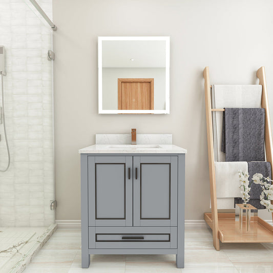 Duko Venice 30" Wooden Vanity Set With White Cararra Marble Tabletop, Rectangular Single Basin and Drawer Cabinet Gray