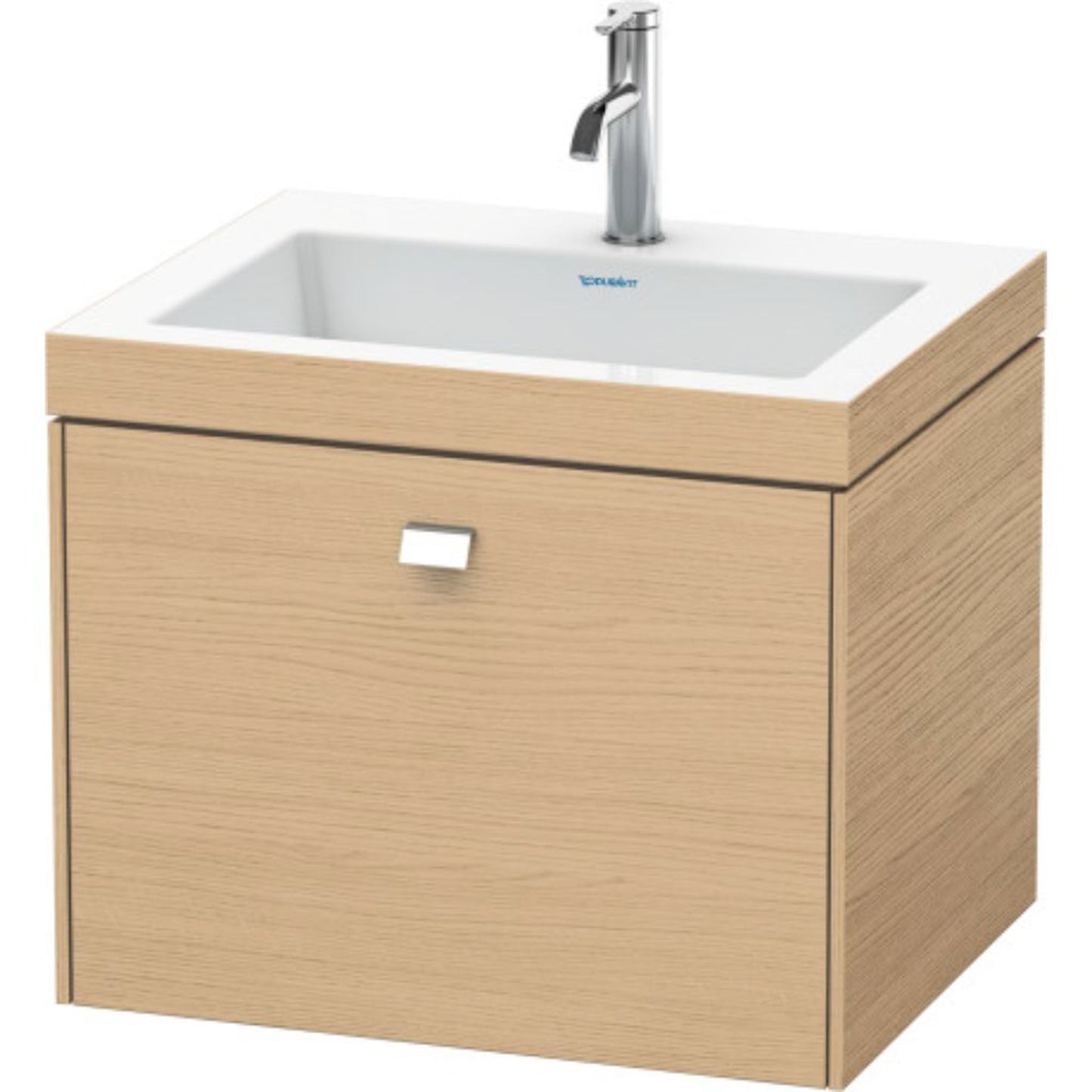 Duravit Brioso 24" x 20" x 19" One Drawer C-Bonded Wall-Mount Vanity Kit With One Tap Hole in Natural Oak and Chrome Handle