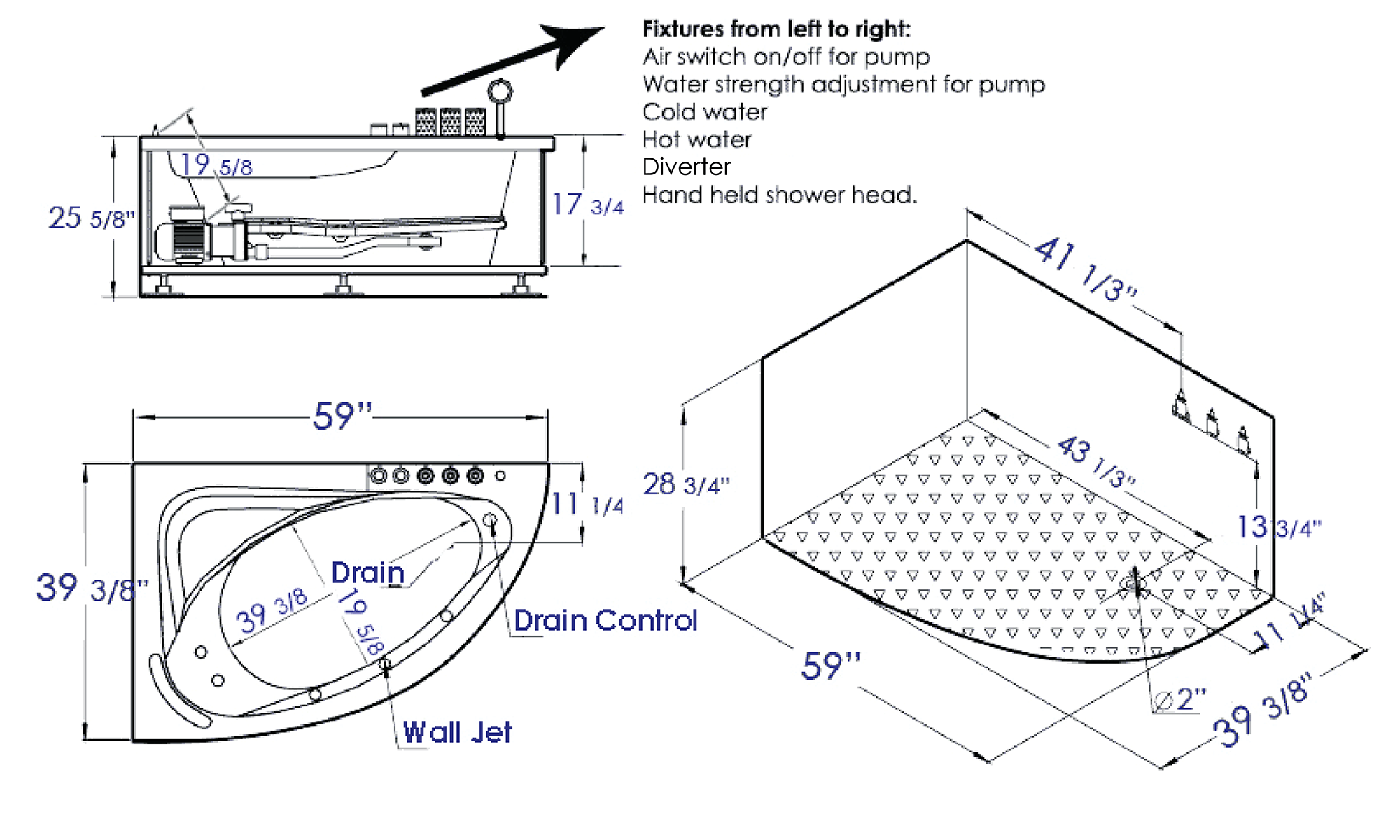 • 7 side jets. Please note that this tub fills itself through the jets so there is no need to purchase a tub filler.