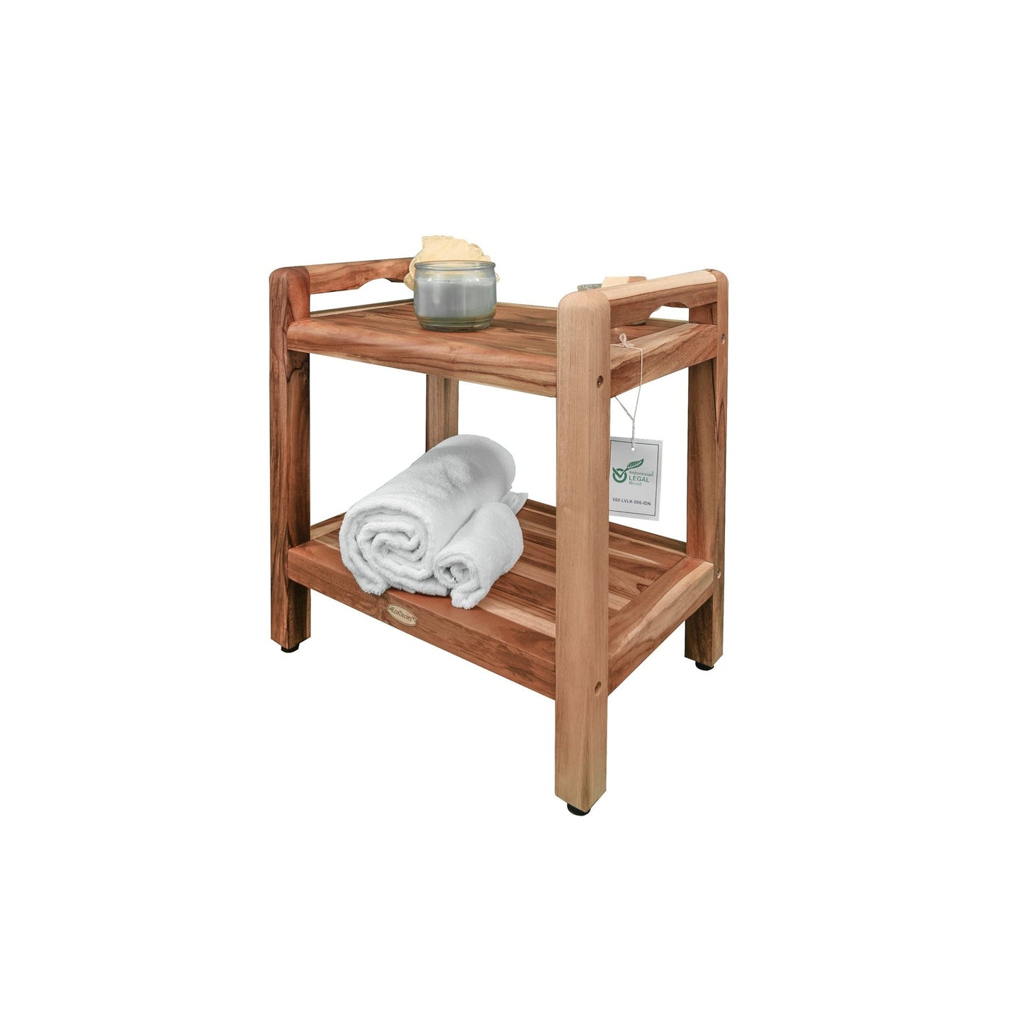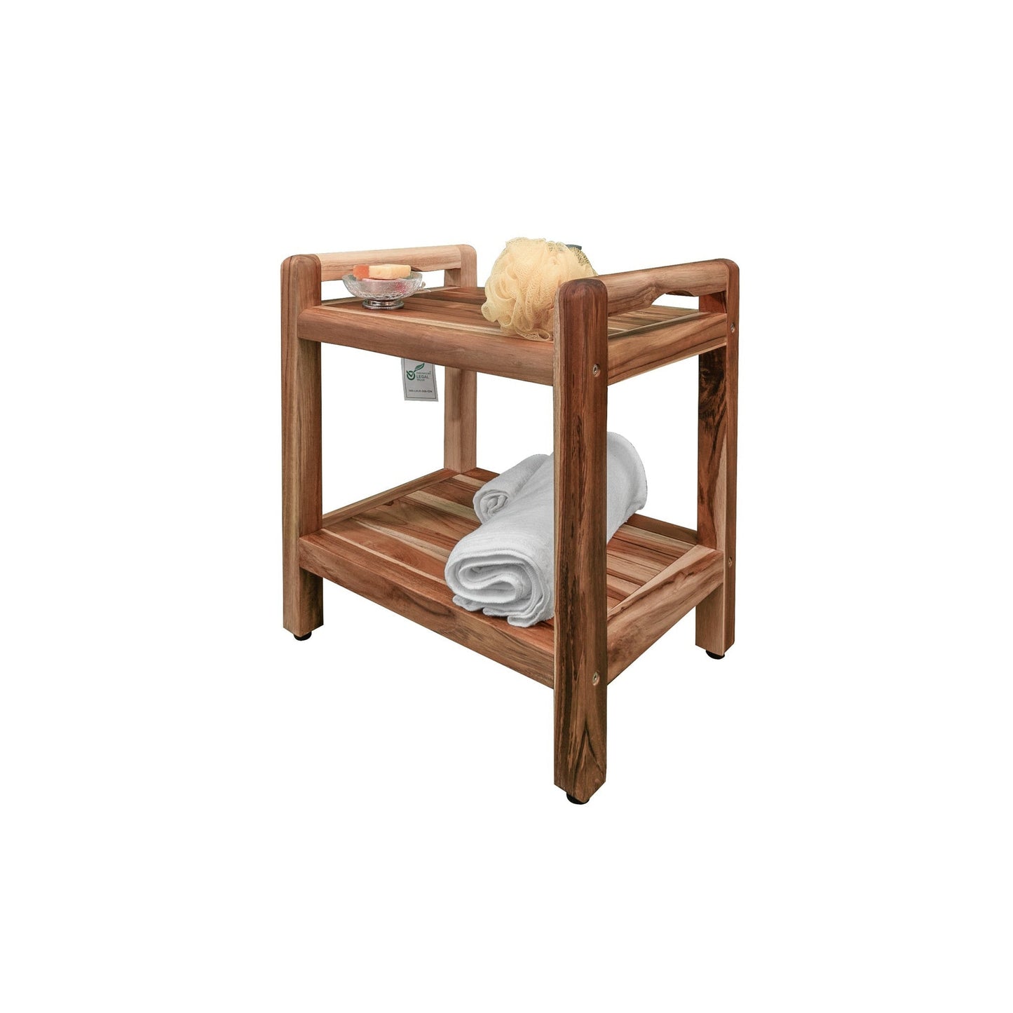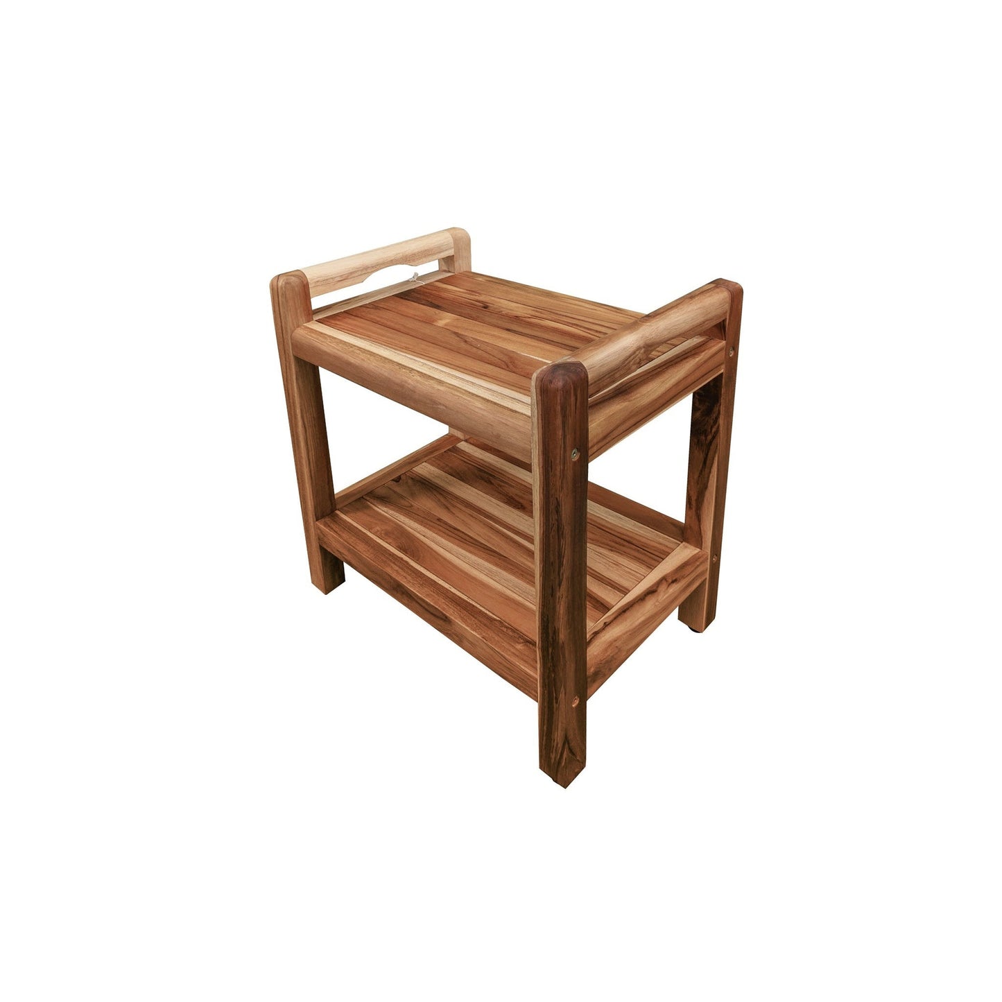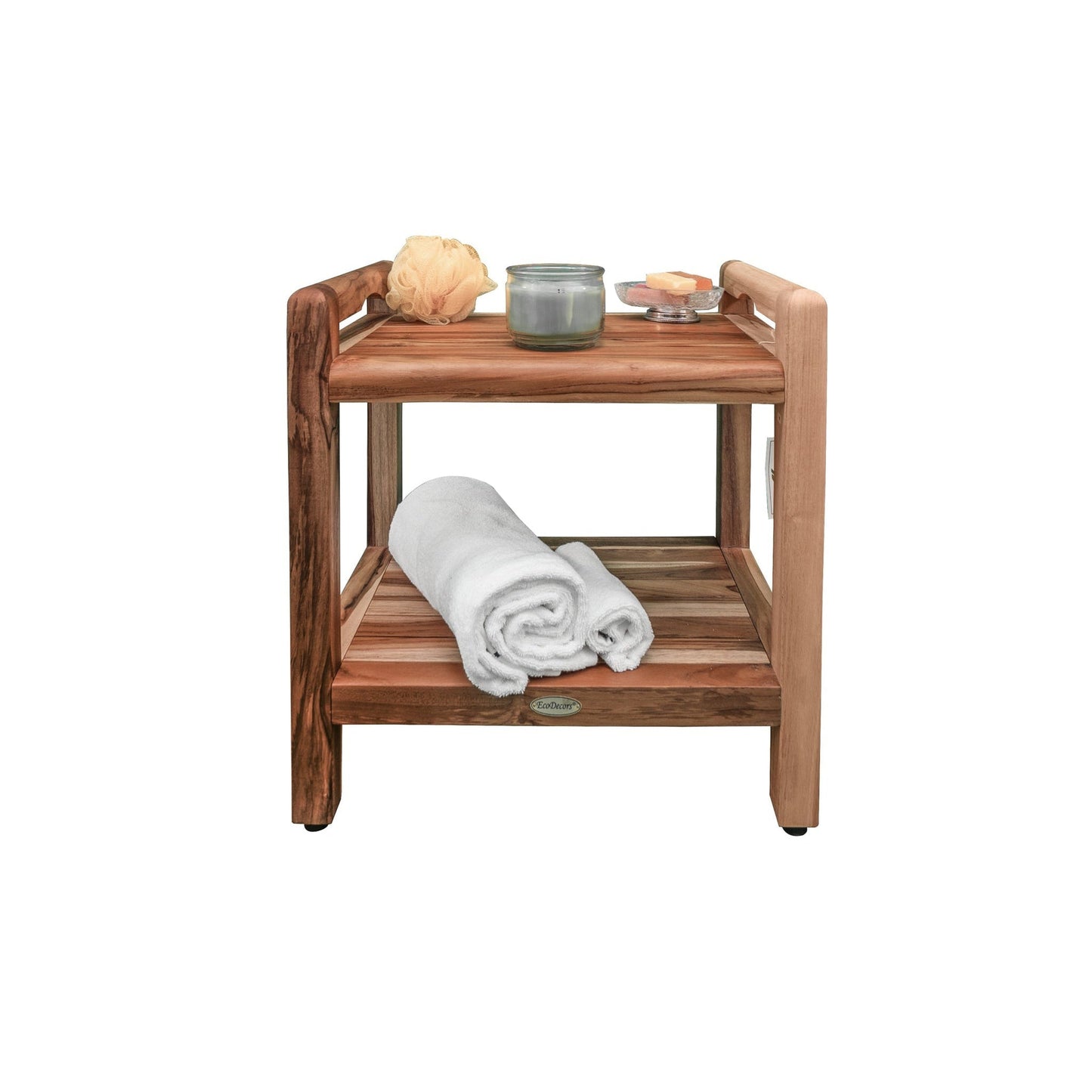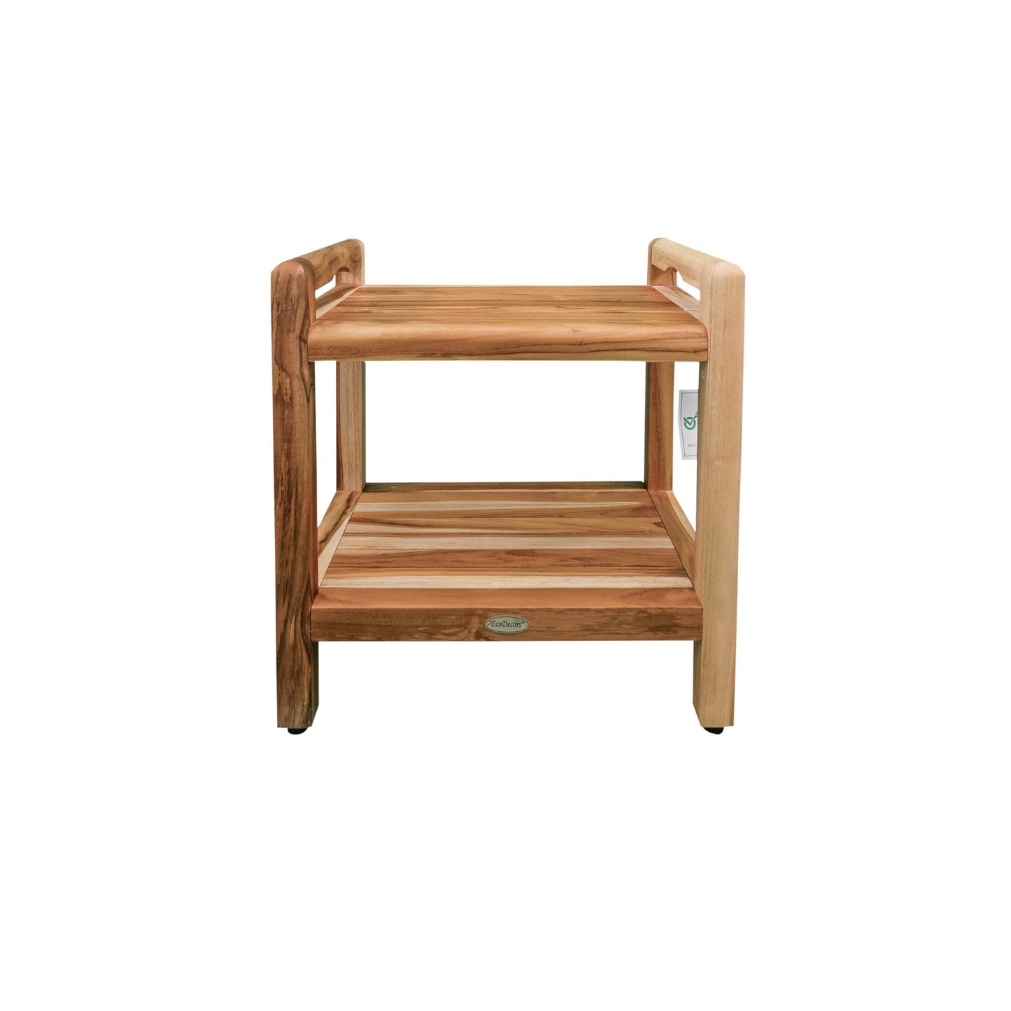 EcoDecors Eleganto 20" EarthyTeak Solid Teak Wood Shower Bench With LiftAide Arms and Shelf