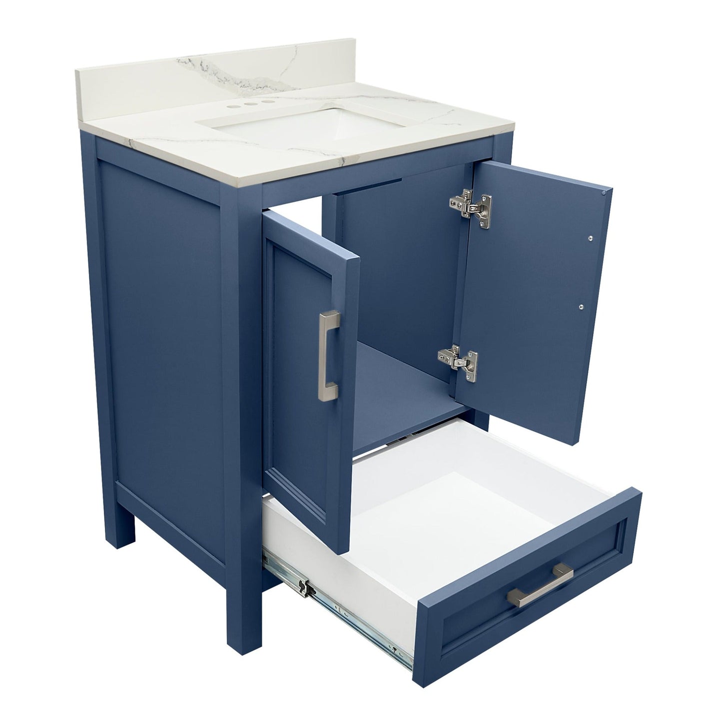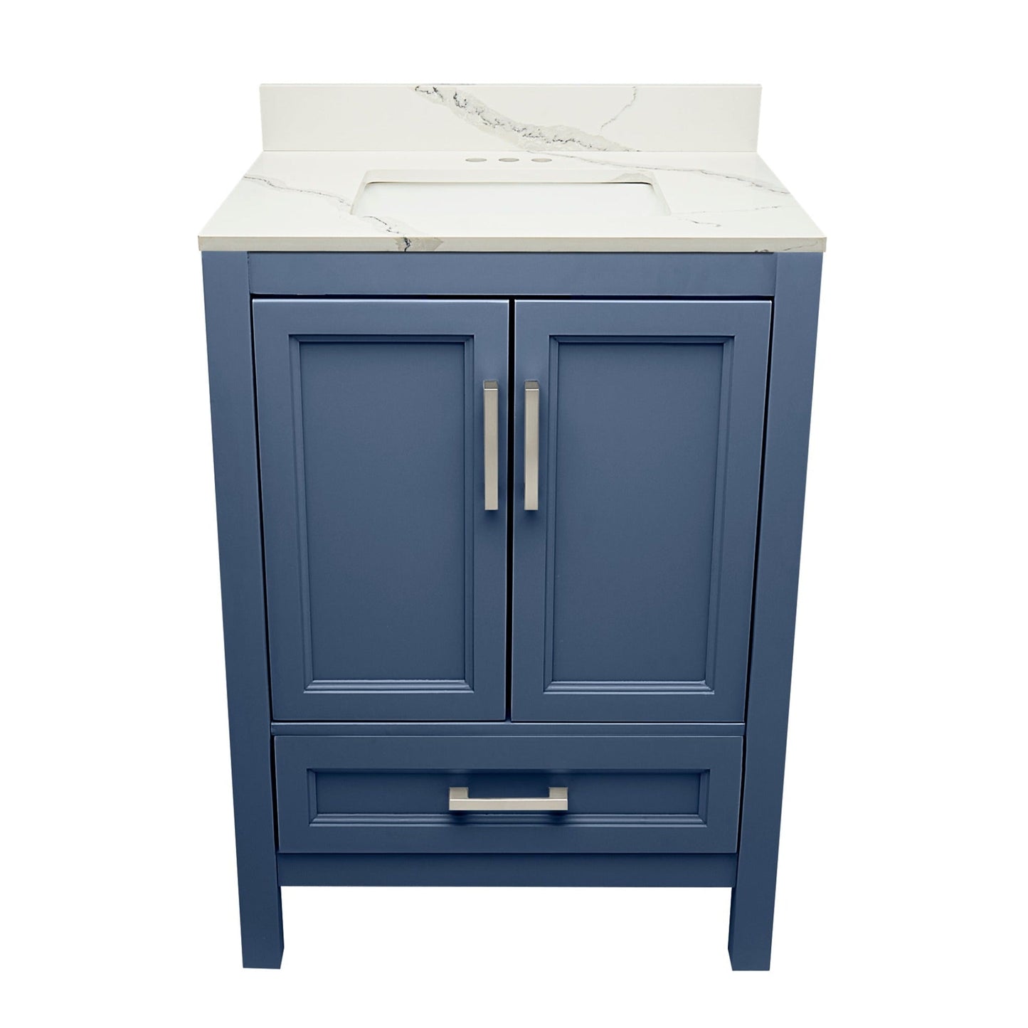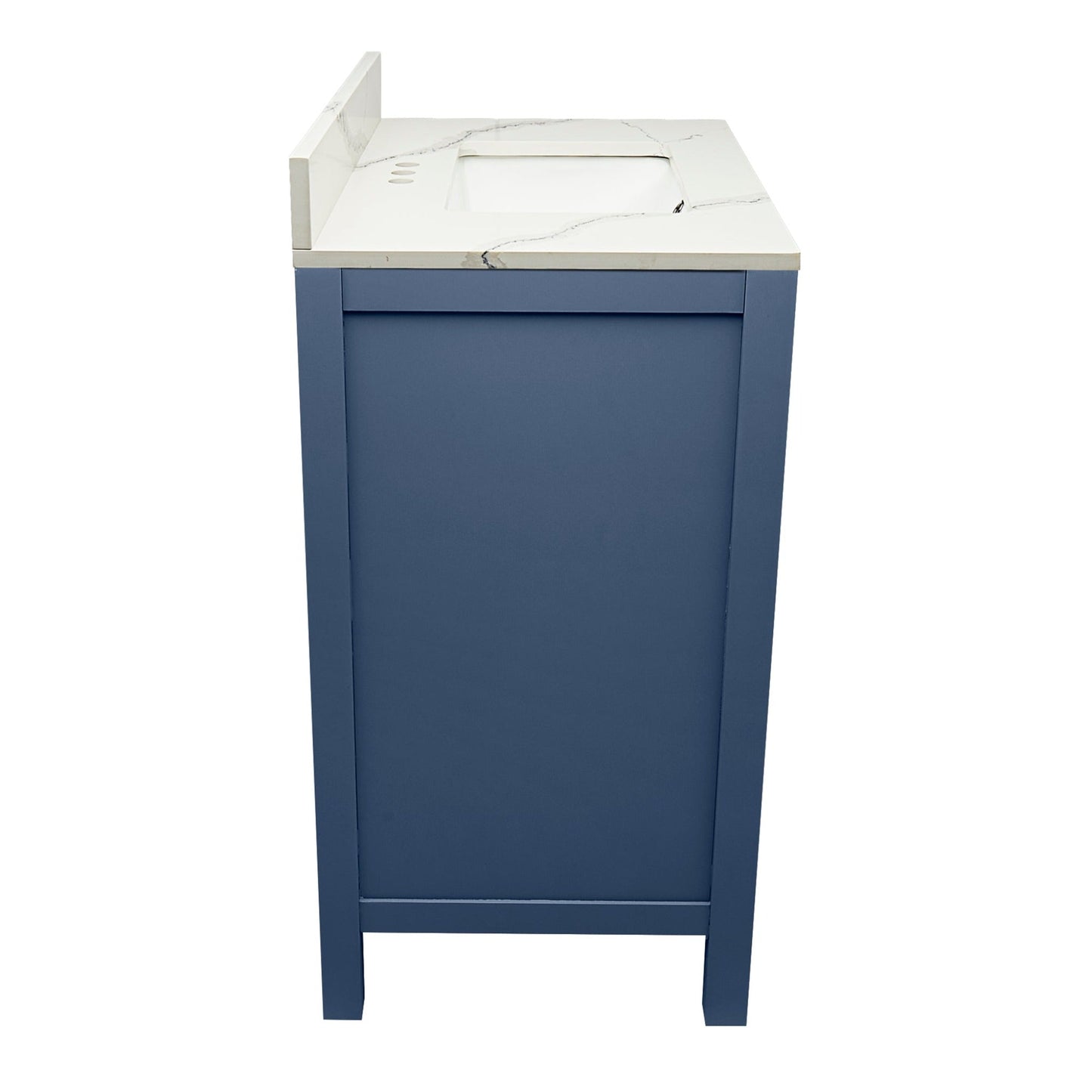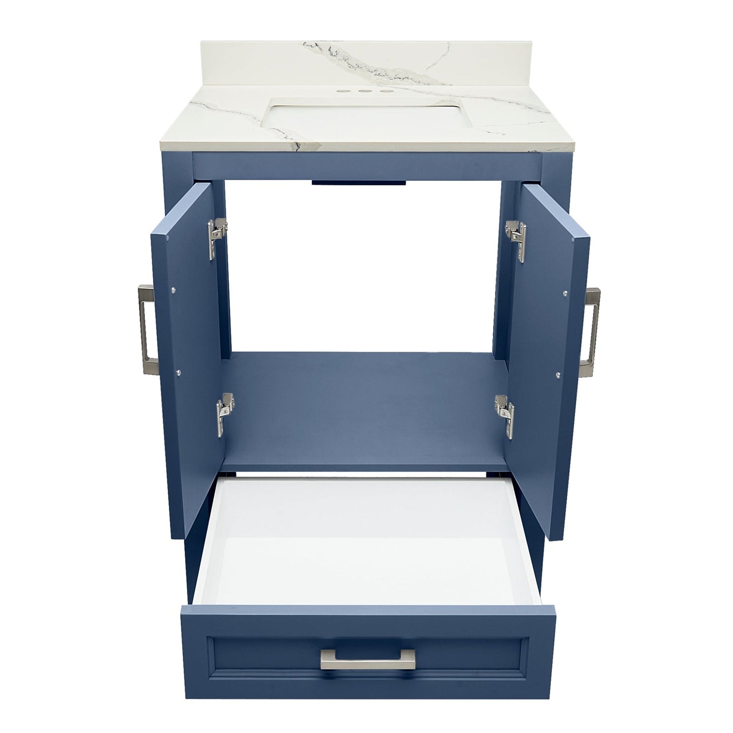 Ella’s Bubbles Nevado 25" Navy Blue Bathroom Vanity With Calacatta White Quartz Stone Top With Backsplash and Sink
