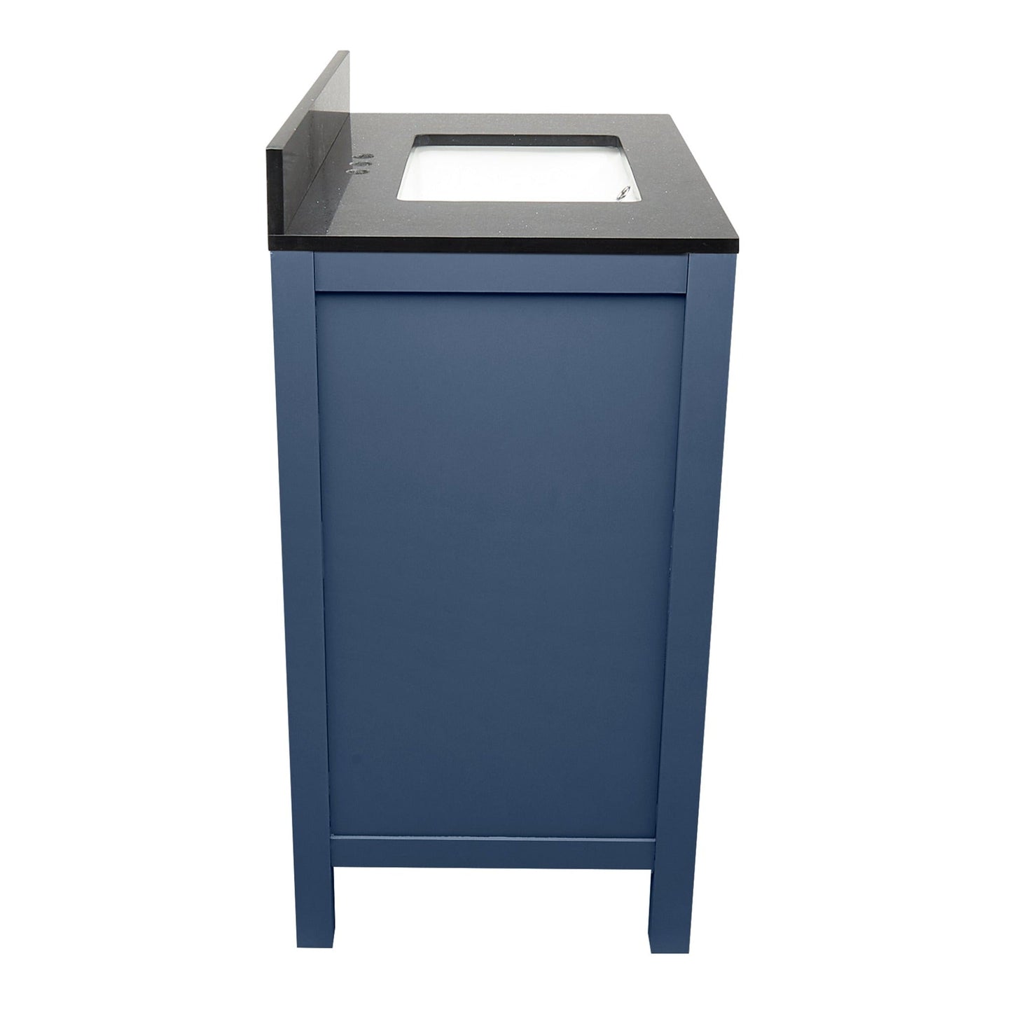 Ella’s Bubbles Nevado 25" Navy Blue Bathroom Vanity With Galaxy Black Quartz Stone Top With Backsplash and Sink