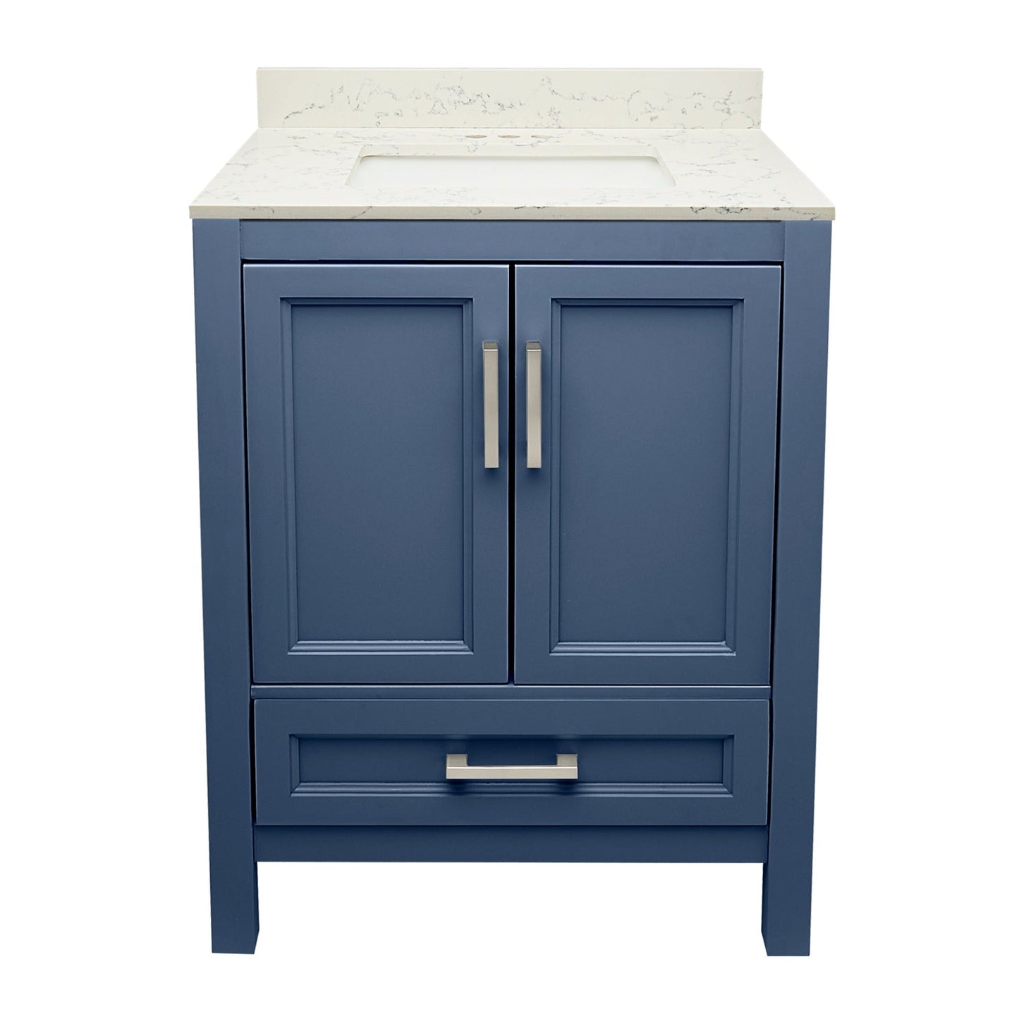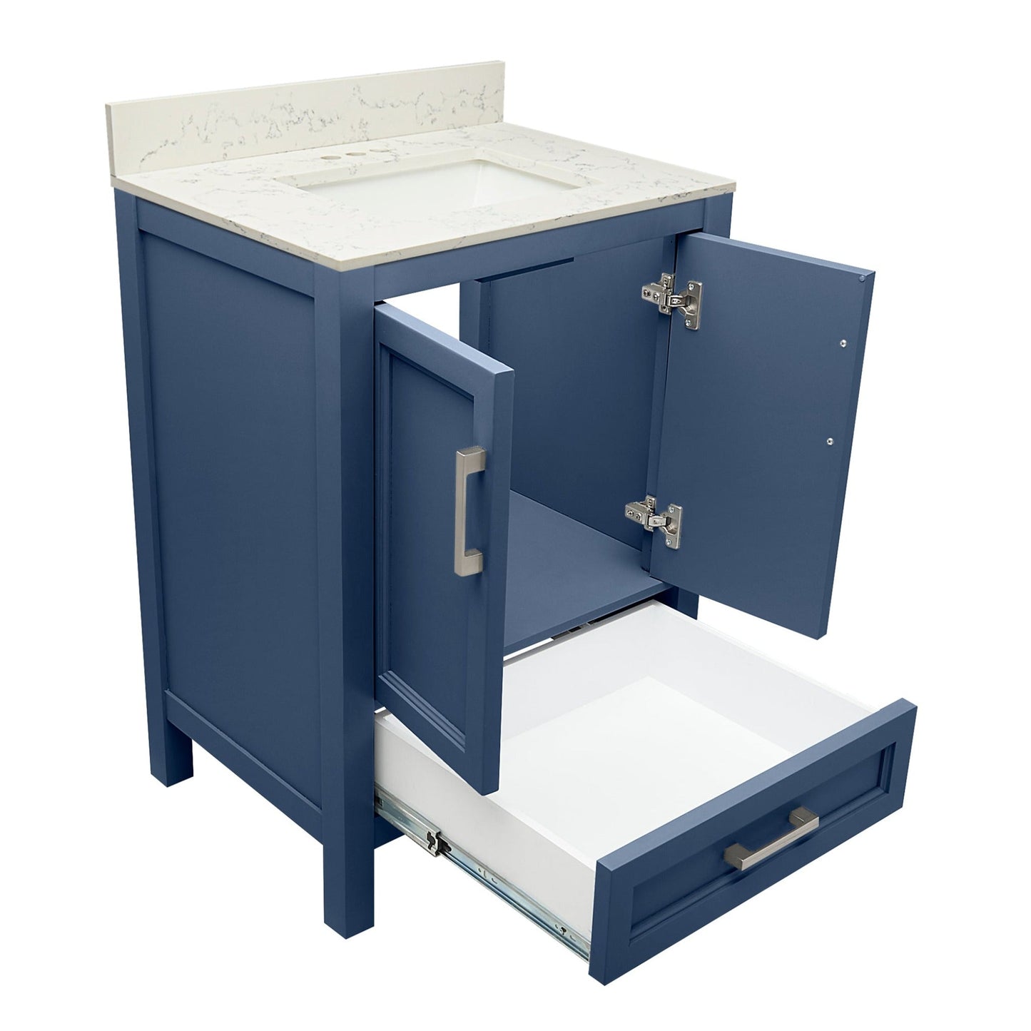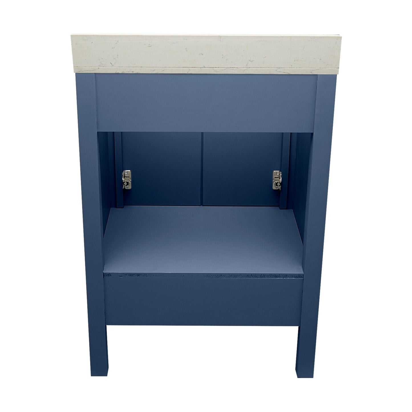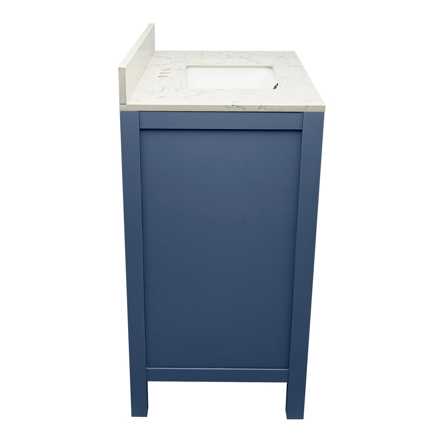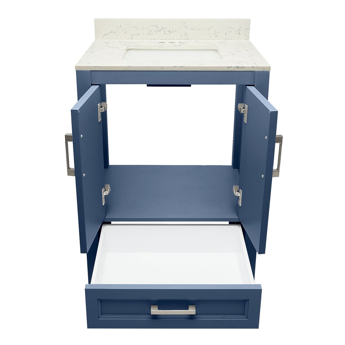 Ella’s Bubbles Nevado 25" Navy Blue Bathroom Vanity With Lyra White Quartz Stone Top With Backsplash and Sink