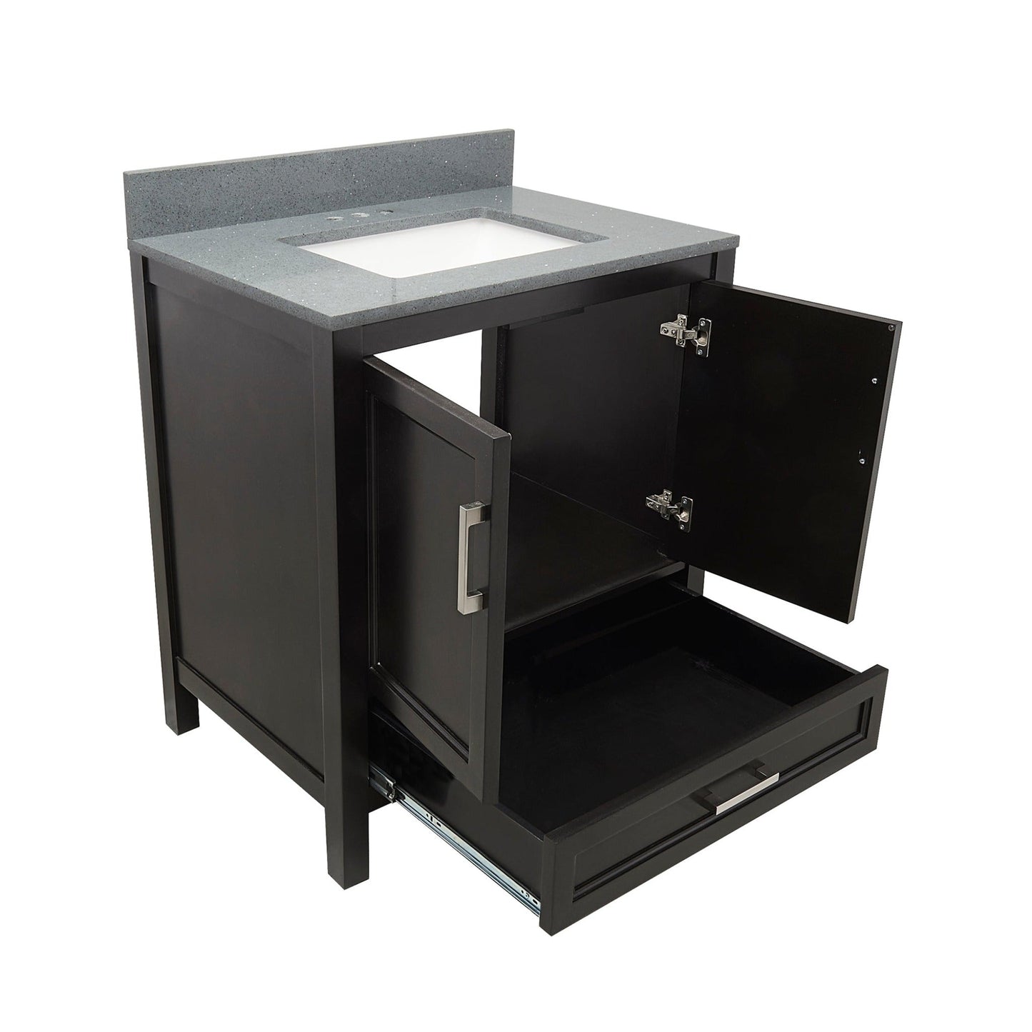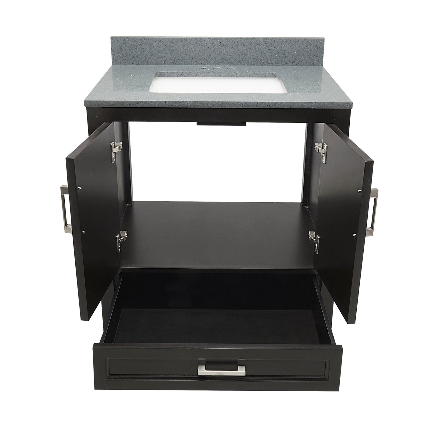 Ella’s Bubbles Nevado 31" Espresso Bathroom Vanity With Galaxy Gray Quartz Stone Top With Backsplash and Sink
