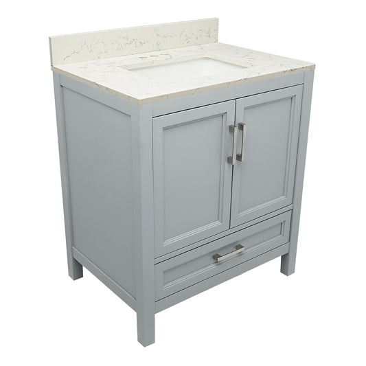 Ella’s Bubbles Nevado 31" Gray Bathroom Vanity With Lyra White Quartz Stone Top With Backsplash and Sink