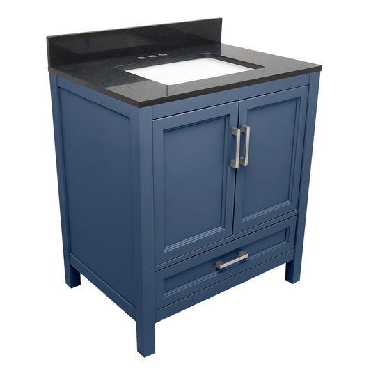 Ella’s Bubbles Nevado 31" Navy Blue Bathroom Vanity With Galaxy Black Quartz Stone Top With Backsplash and Sink