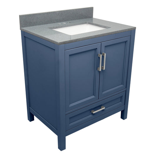 - Galaxy Gray quartz stone top with attached undermount sink and backsplash