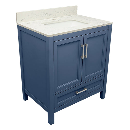 Ella’s Bubbles Nevado 31" Navy Blue Bathroom Vanity With Lyra White Quartz Stone Top With Backsplash and Sink