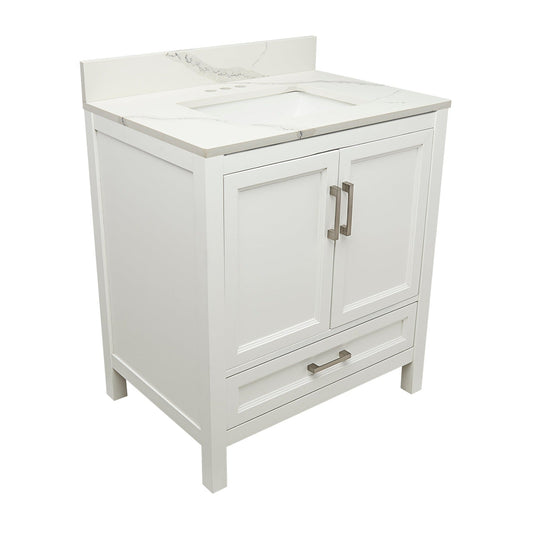 Ella’s Bubbles Nevado 31" White Bathroom Vanity With Calacatta White Quartz Stone Top With Backsplash and Sink