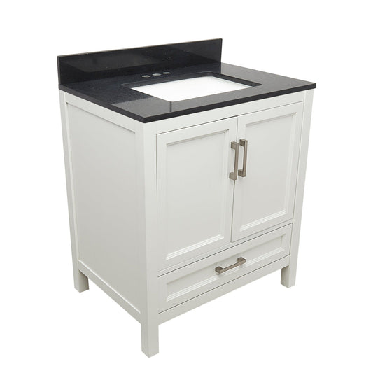 Ella’s Bubbles Nevado 31" White Bathroom Vanity With Galaxy Black Quartz Stone Top With Backsplash and Sink