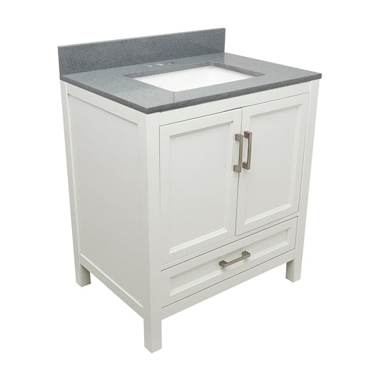 Ella’s Bubbles Nevado 31" White Bathroom Vanity With Galaxy Gray Quartz Stone Top With Backsplash and Sink