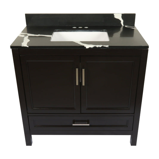 Ella’s Bubbles Nevado 37" Espresso Bathroom Vanity With Calacatta Black Quartz Stone Top With Backsplash and Sink