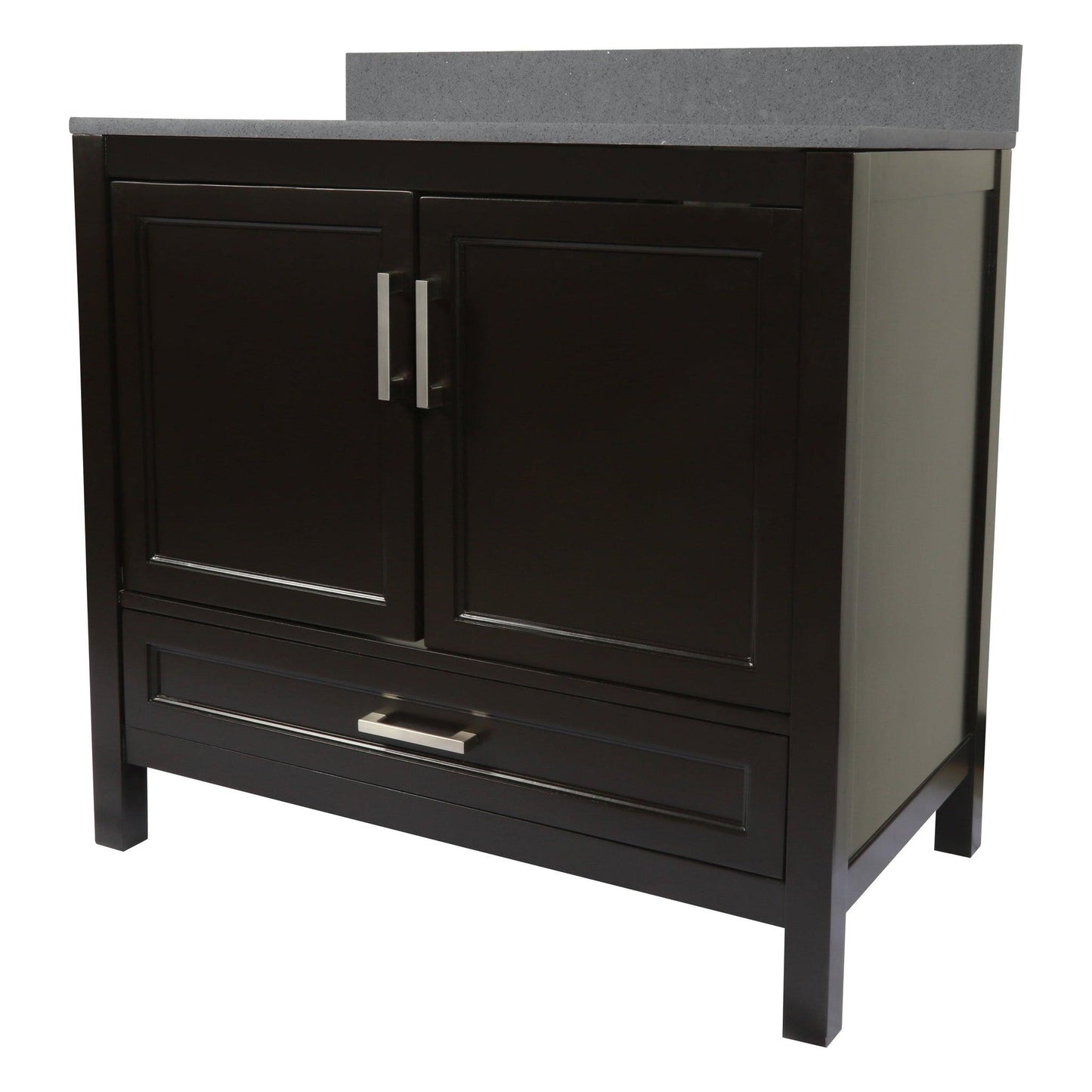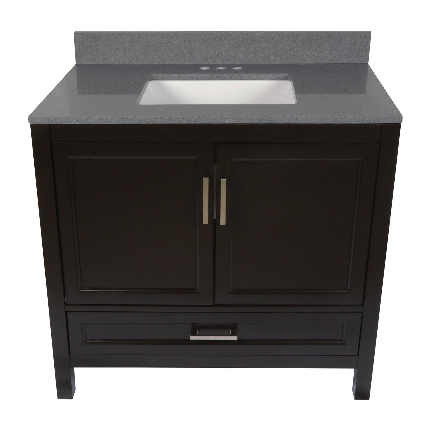 Ella’s Bubbles Nevado 37" Espresso Bathroom Vanity With Galaxy Gray Quartz Stone Top With Backsplash and Sink